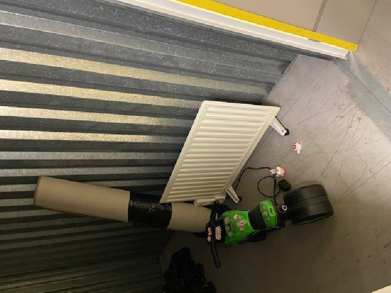 mainly empty unit with 3 items in very good condition, originally wrapped in cellophane. Childs plastic balance bike, electric radiator, and rug/carpet as per photos. All items well looked after.