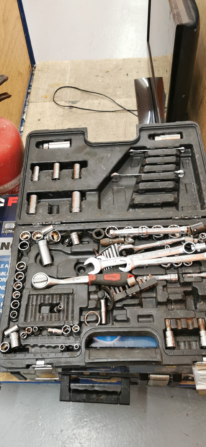 1 Plastic box containing tools