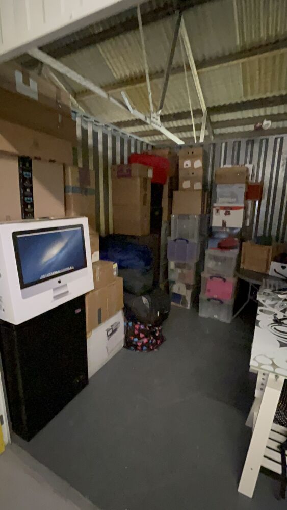 Unit is full of household items including glass table. Fully packed IMAC. Under counter freezer, boots. Lenovo Think vision monitor sealed. Gym weights. Fully sofology care kit. Bosch and Magnusson tool set. Auto glym full sealed car kit. Bosch drill in box.