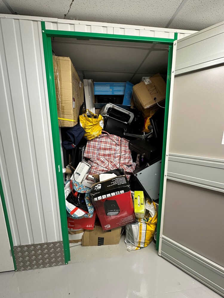 match perfectly with the items within the unit. All items described are done so from the parameter of the storage unit. Any items of a personal nature must remain in the storage room at the time of collection for the attention of the staff onsite. All items sold as seen. household goods. boxes, printer, chairs, office stationary.