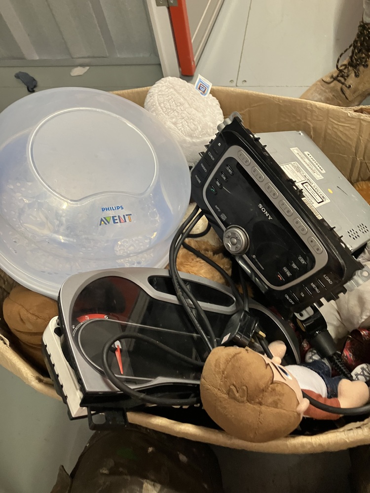 1 x Box of assorted items including car stereo and soft toys