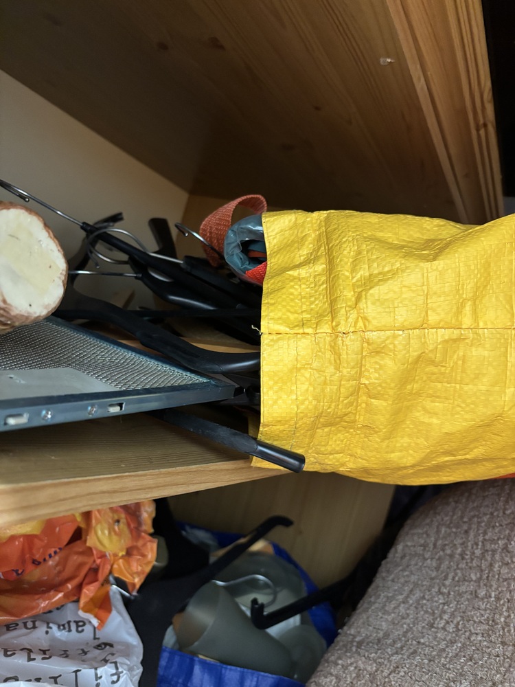 Dangerously stacked please take care when opening