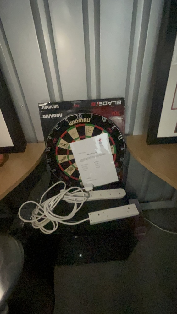 Unit has signed and certified darts board including Luke Littler and framed x2 signed Bristol city football shirts. Signed football Puma boot signed. Office desk x4 and office chair. Coach 2 seater. Hp laptop, monitors and pc and cables. Office drawers. Under desk fridge. Hp printer, large to screen, white boards. Samsung phone , bins.