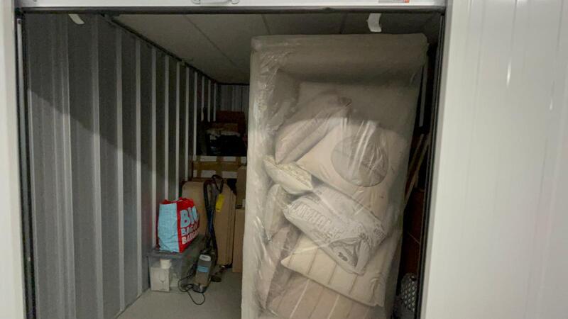 100 sq ft unit containing many household items containing amongst other things 2 as new sofs an armchair and matching stool.