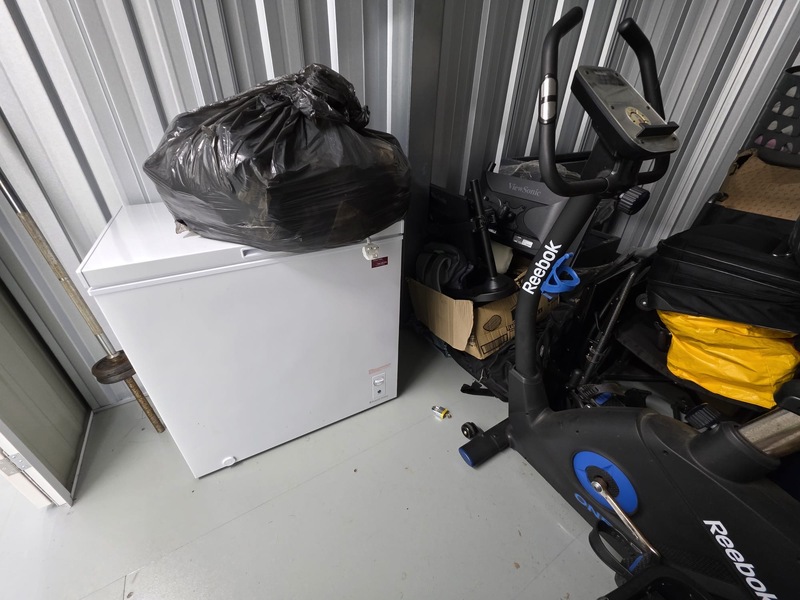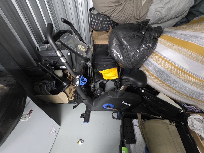 Exercise bike, clothing, duvet, view sonic monitor, chest freezer, misc items, reebok bike, duvets etc