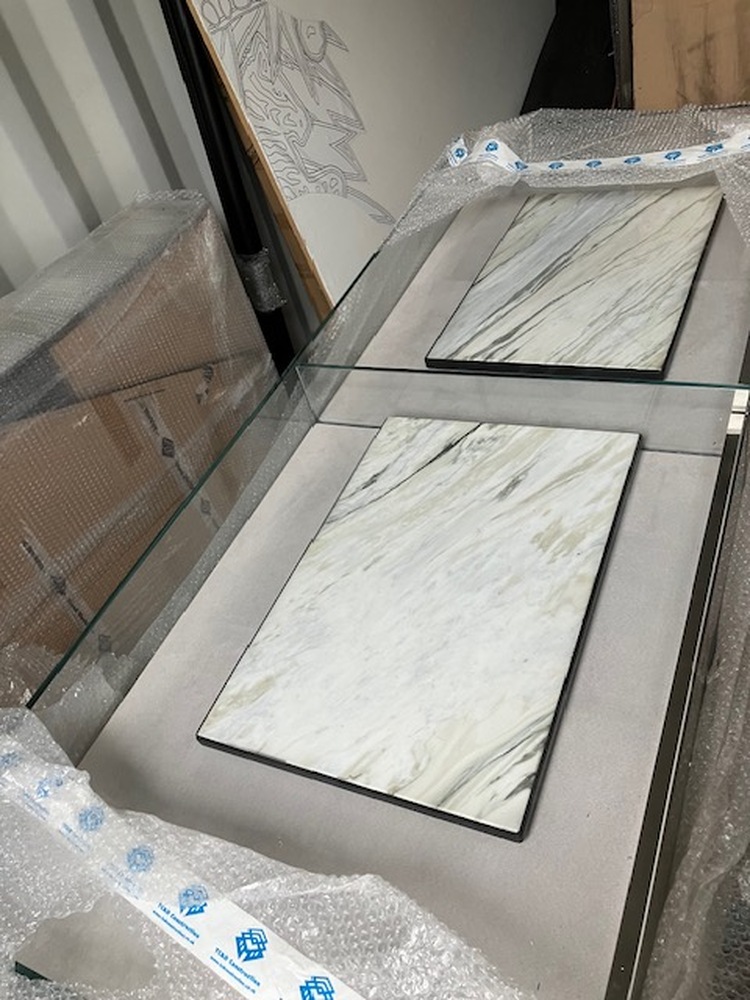 The items are display units and fittings from quite a large, modern, high-end Mayfair based retail outlet of men’s clothing and there are quite a few large marble slabs. We can see at least 8 but note there are probably more.