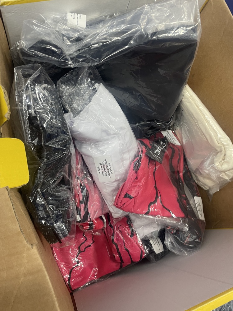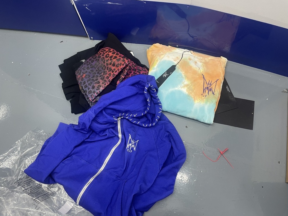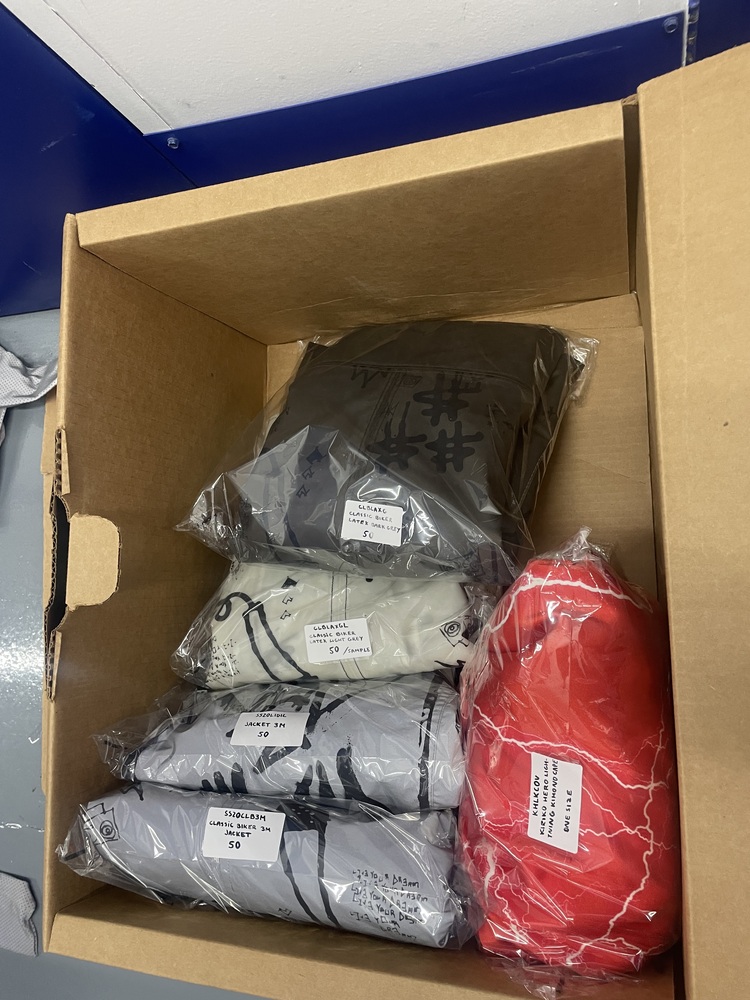 This is a room containing designer clothing by Marc Jacques Burton all new and labelled including: