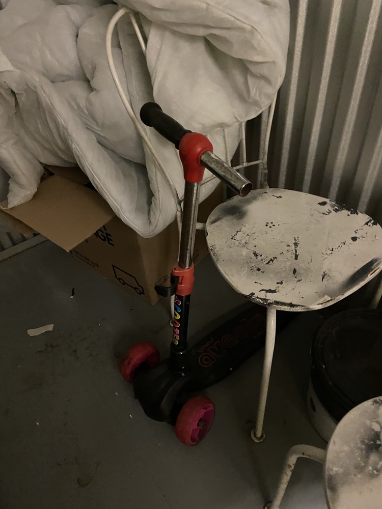 Old skateboard and old scooter.
