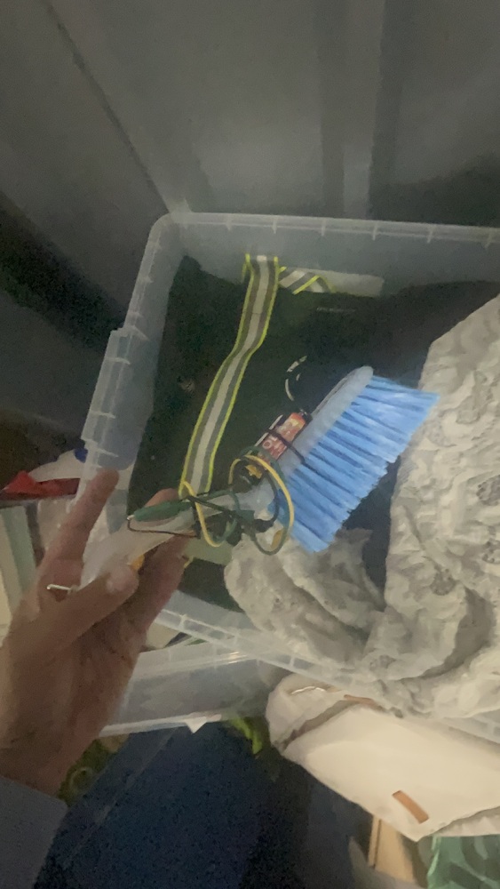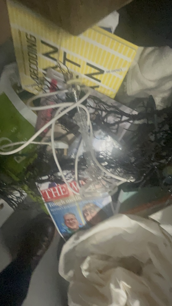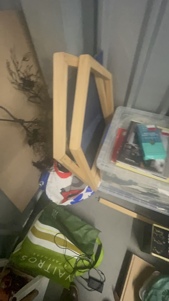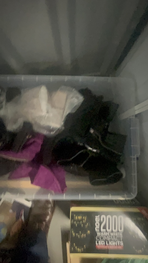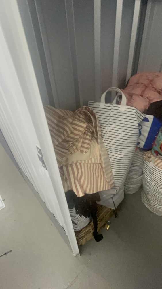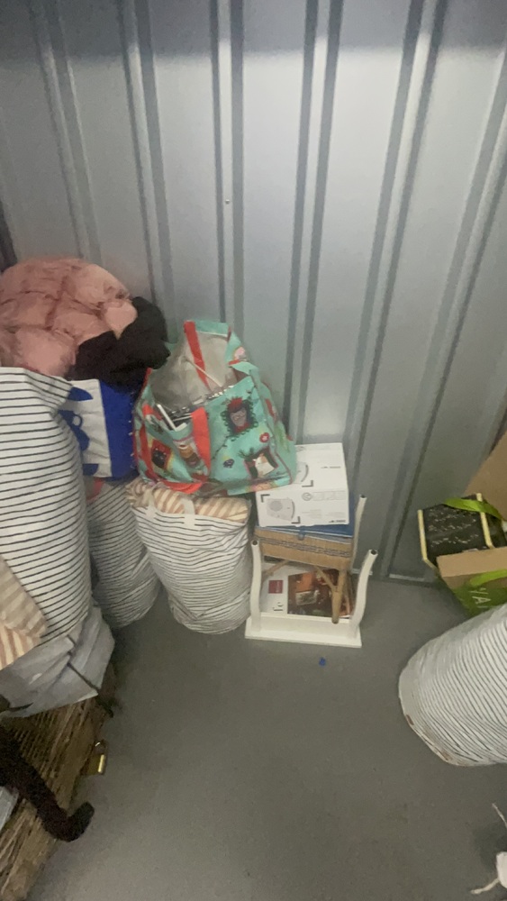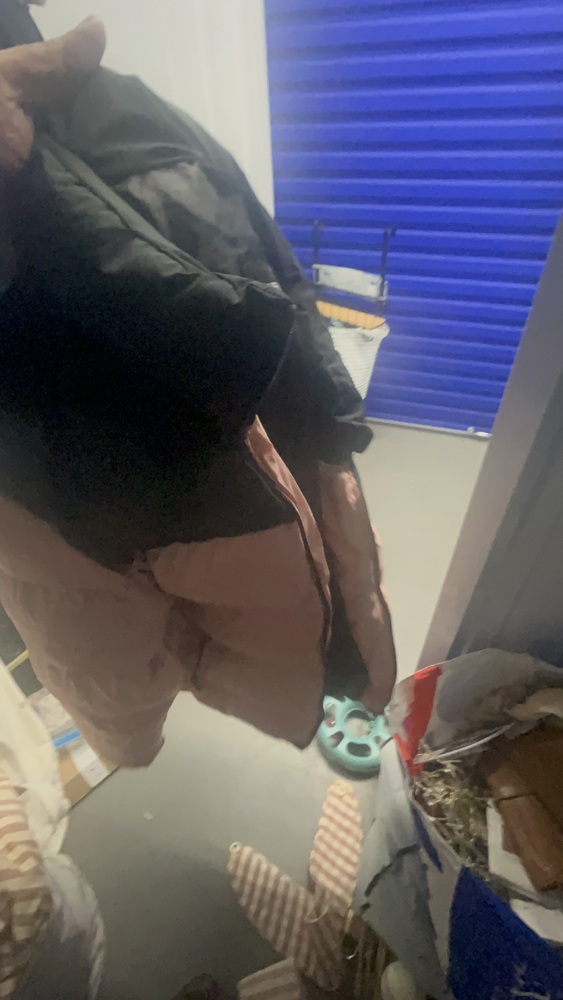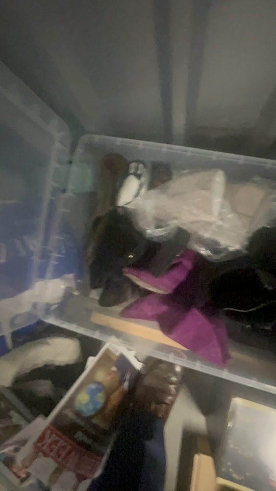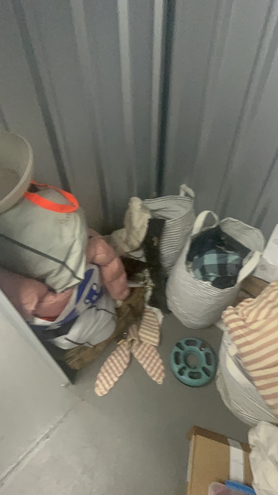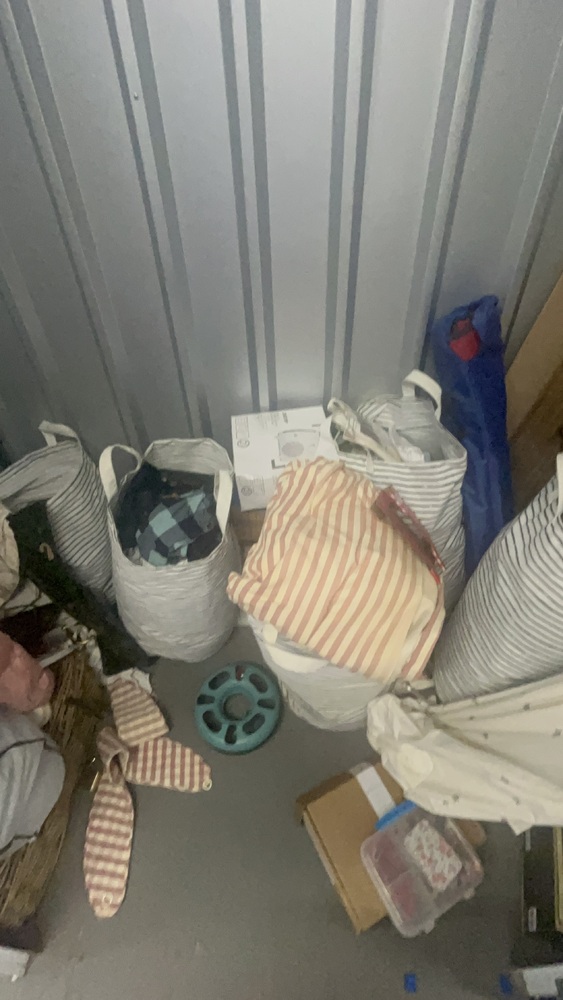 Unit has household items. Clothes, women’s shoes. Books, with one signed book. Heater, books, north face women’s jacket, women’s handbag.baseball.
