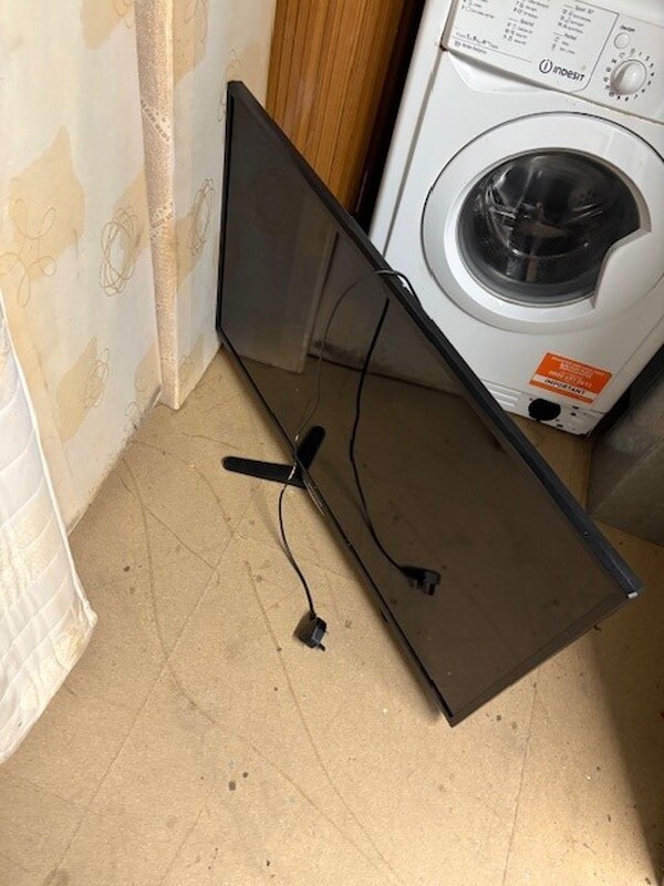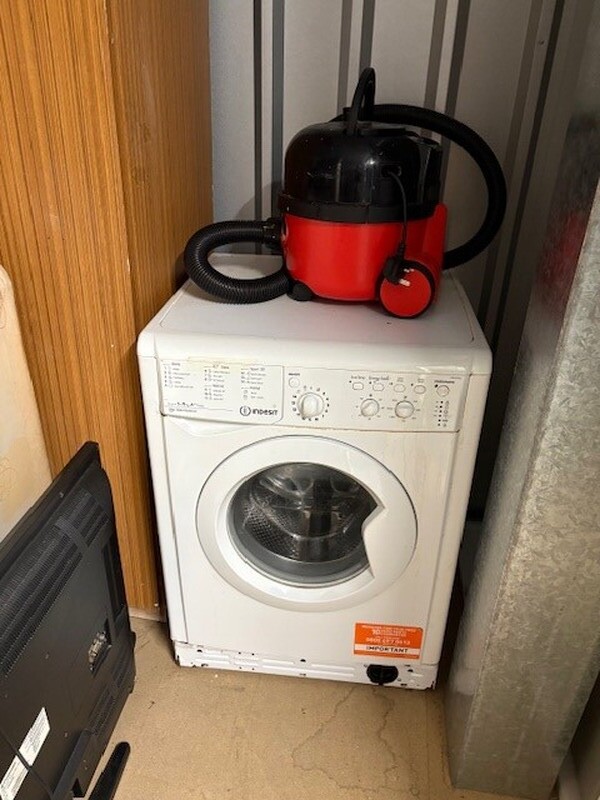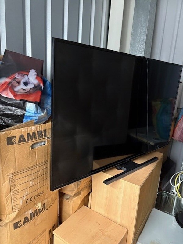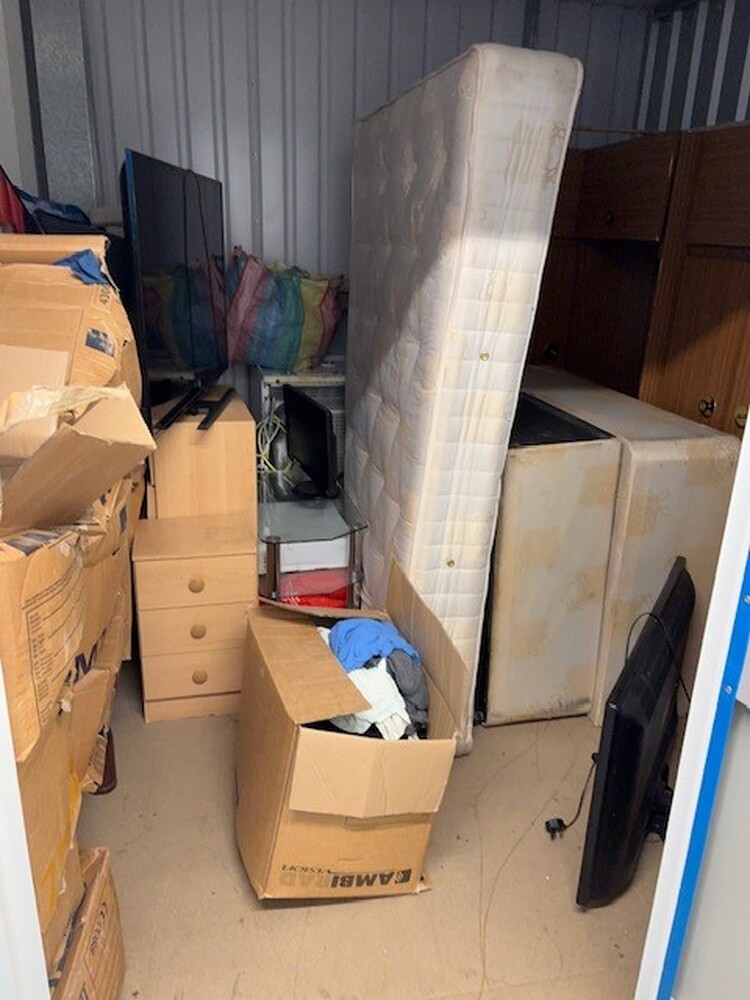 100 Sqft unit full of house contents. Main items are two tv's. Washing machine. Hoover. Bed. Matress. Units.