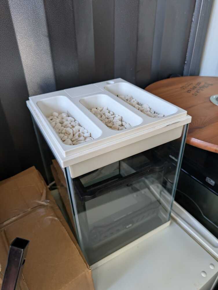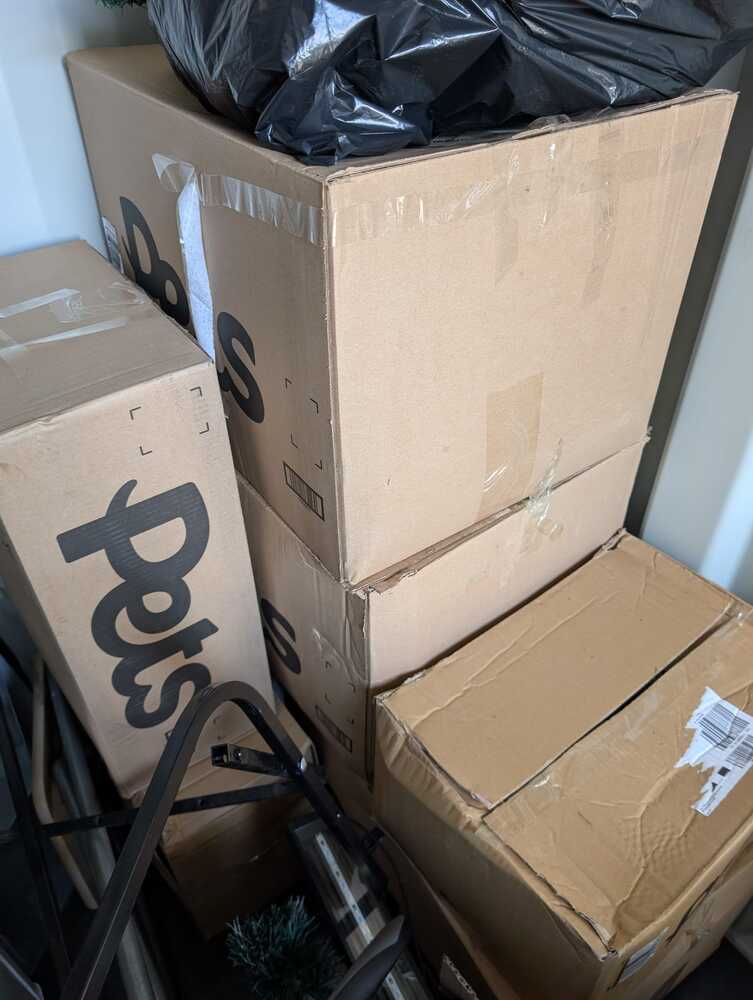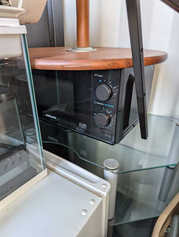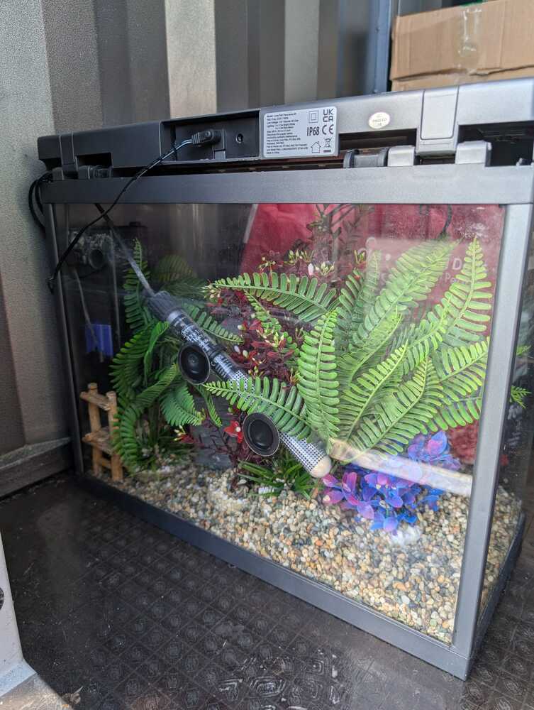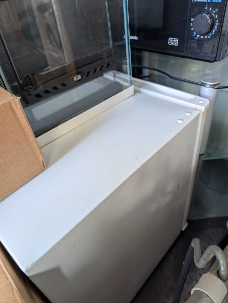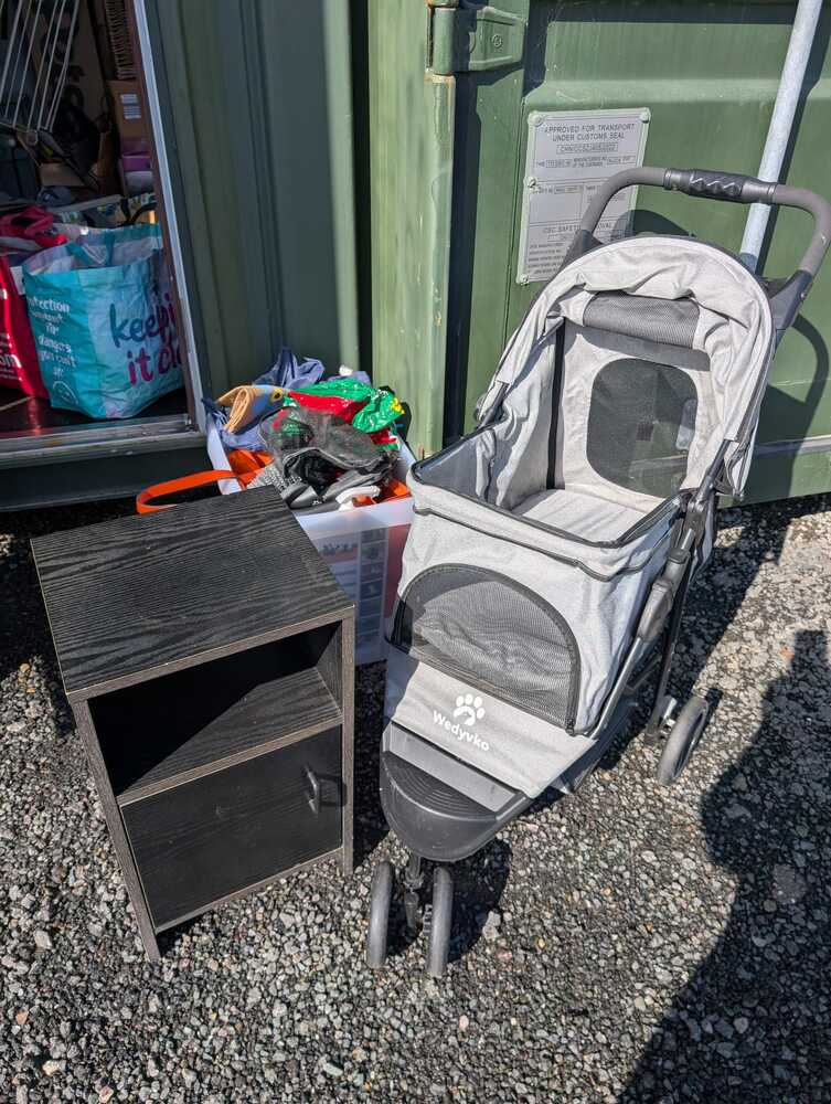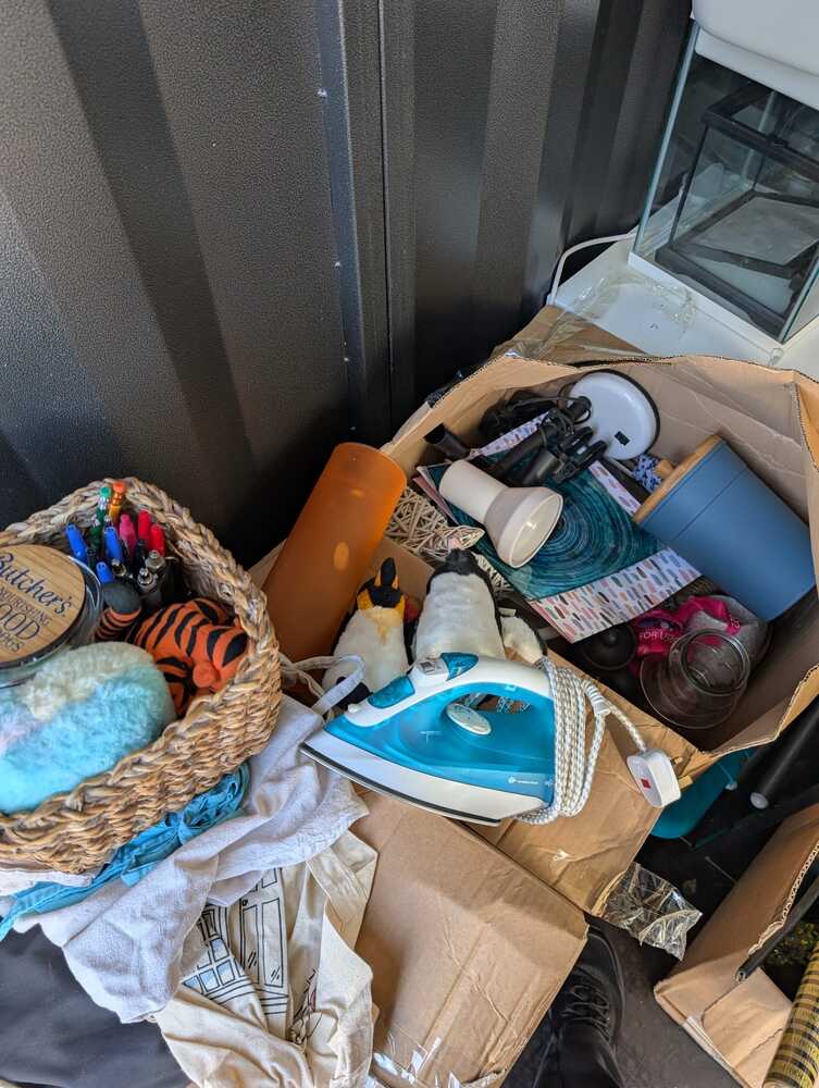 A 40 SQFT unit containing general household items, including a number of pet tanks with accessories, fridge, microwave, bags, watches and much more.
