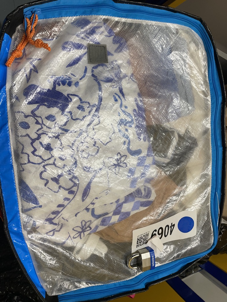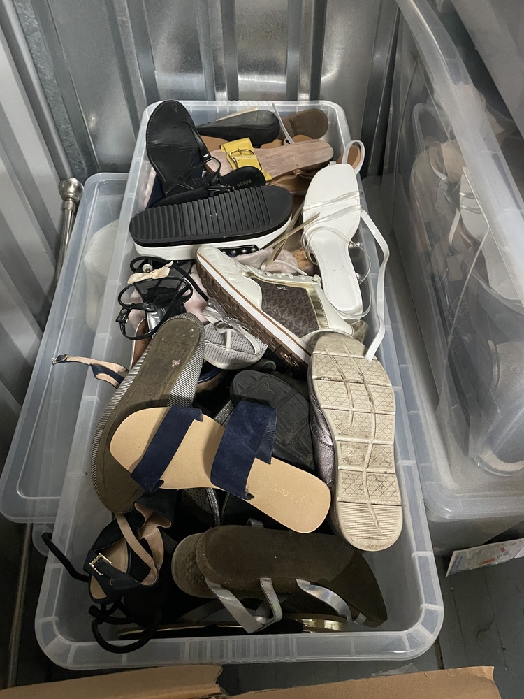 Plastic storage boxes of clothing,bedding and miscellaneous items
