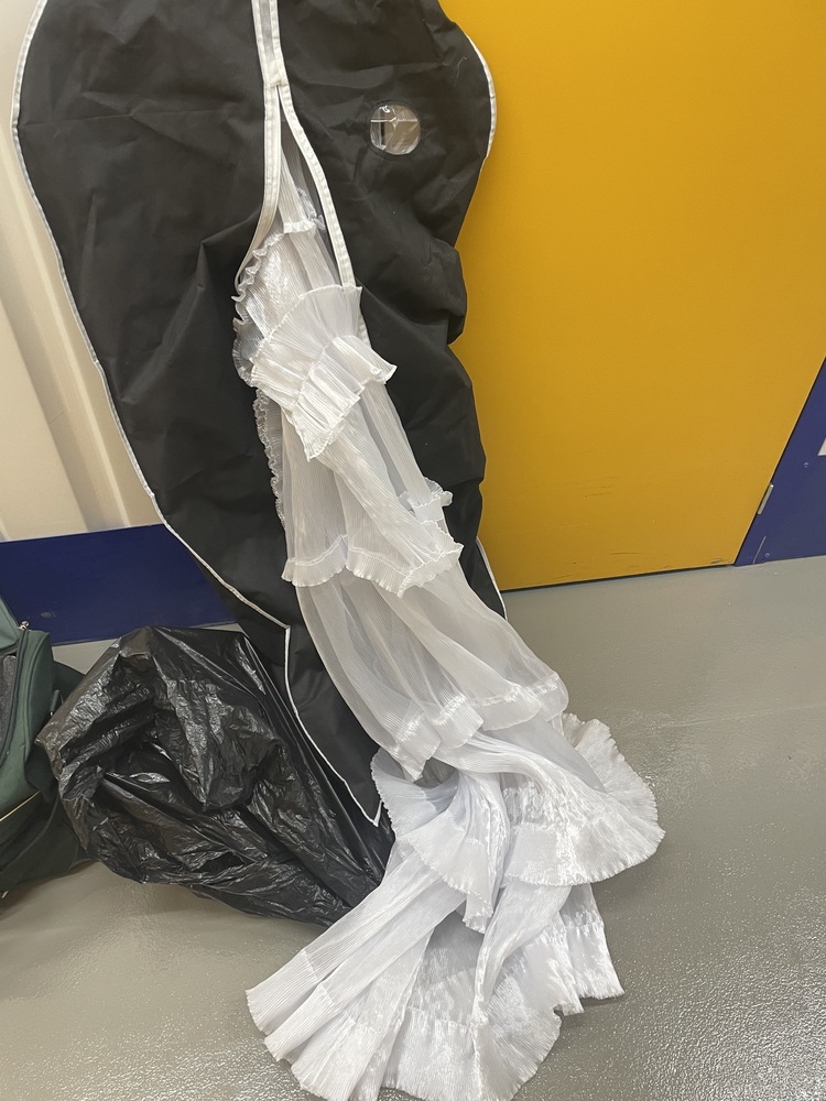 White net dress in suit bag