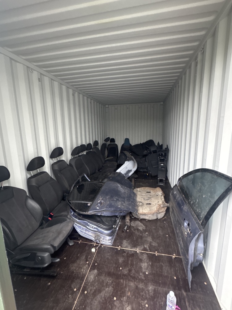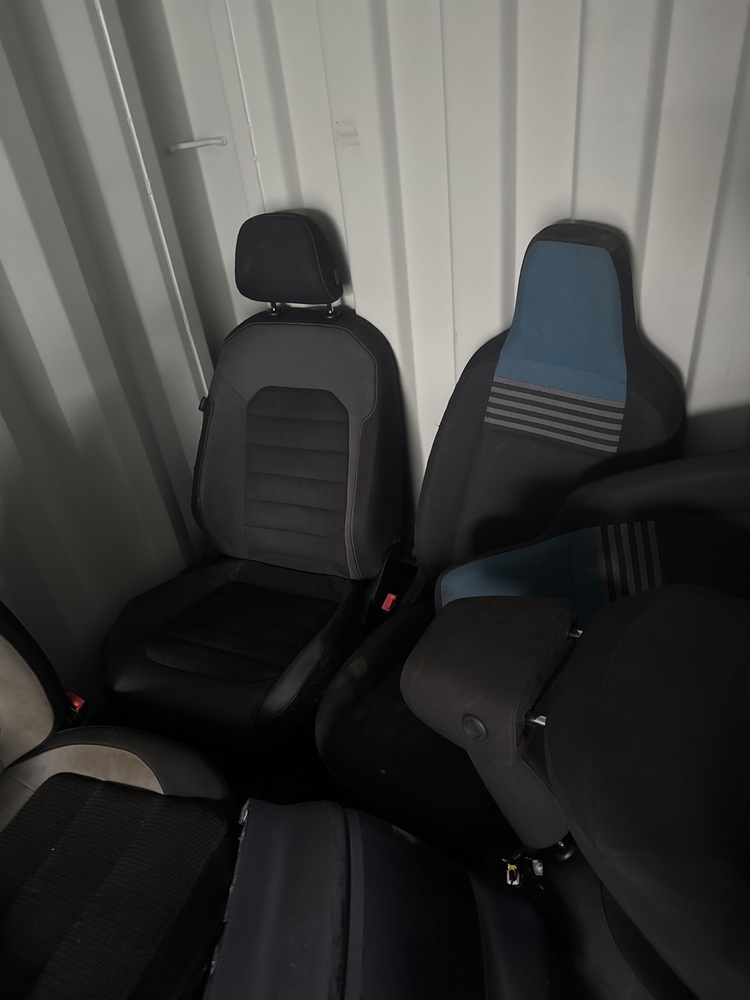 Auctioning the full contents of a storage container featuring a collection of car seats. Items include a range of vehicle seats in various styles, materials, and conditions — ideal for car enthusiasts, mechanics, or upholsterers looking for replacement parts or restoration projects. Suitable for different makes and models, these seats offer great potential for reuse, refurbishment, or resale. Additional also has door panels and bumper