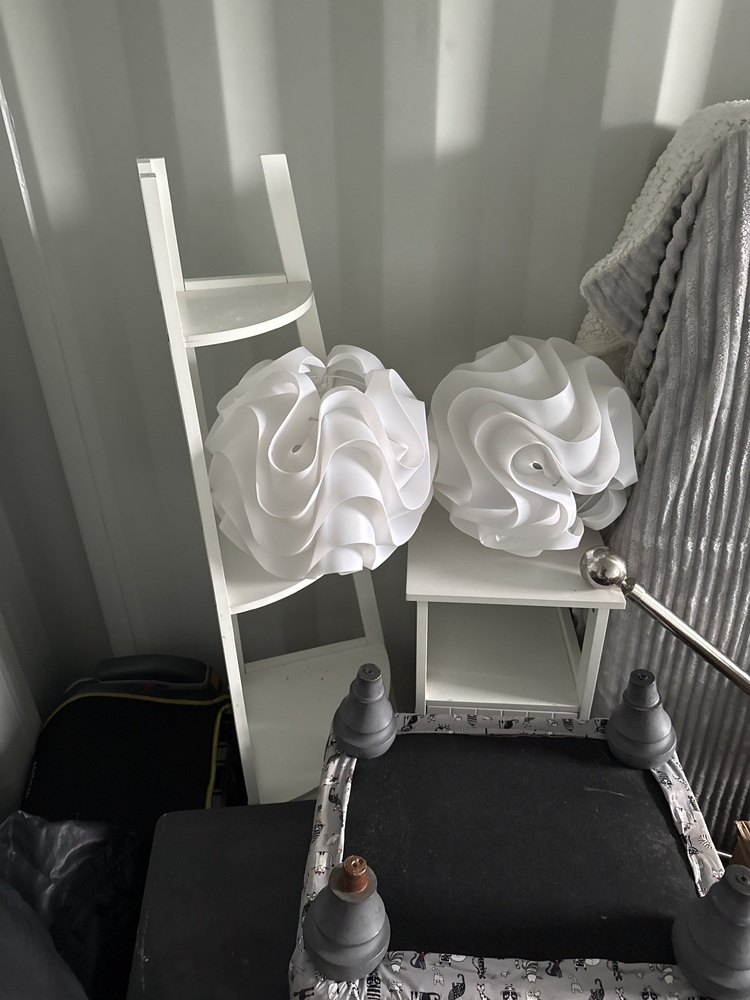 Auctioning the complete contents of a storage container, featuring a selection of practical and useful household items. Included are sturdy tiered shelving units ideal for organisation and display, several assorted boxes containing mixed household goods, and a comfortable mattress.