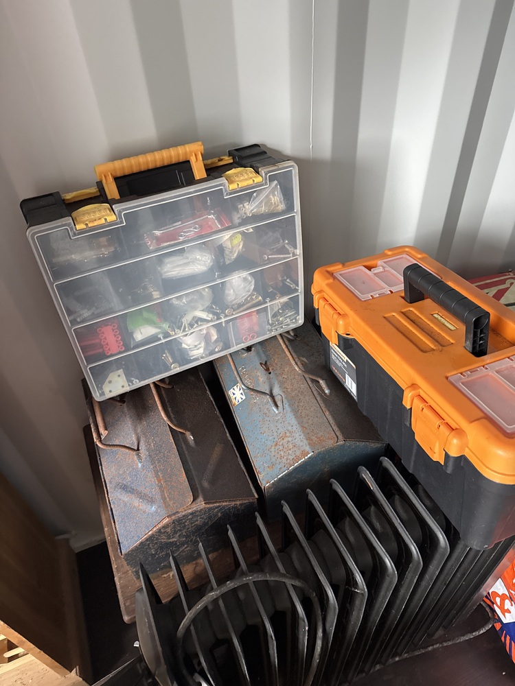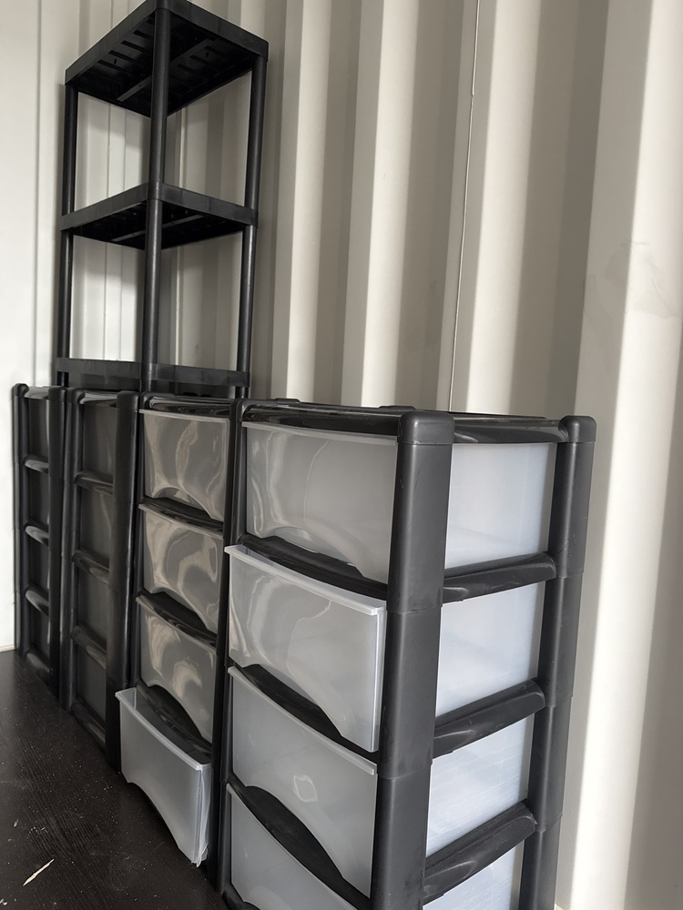 Auctioning the full contents of a storage container, including a range of practical and versatile items. storage shelves ideal for home organisation,a stylish wine rack, and multiple toolboxes containing assorted tools and accessories.