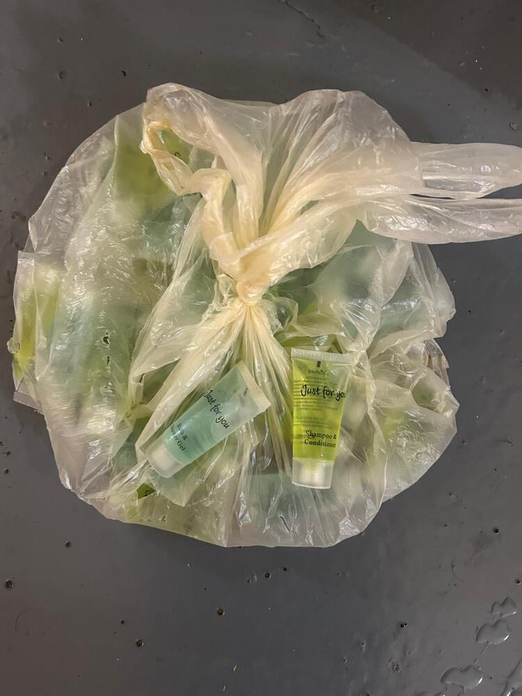 Selection of toiletries in bag