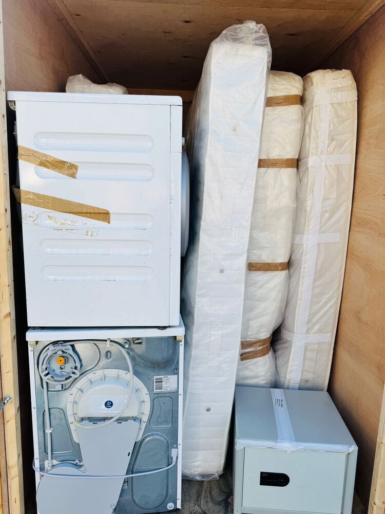 4 mattress, washing machine, dryer, fridge freezer and a safe(no keys)