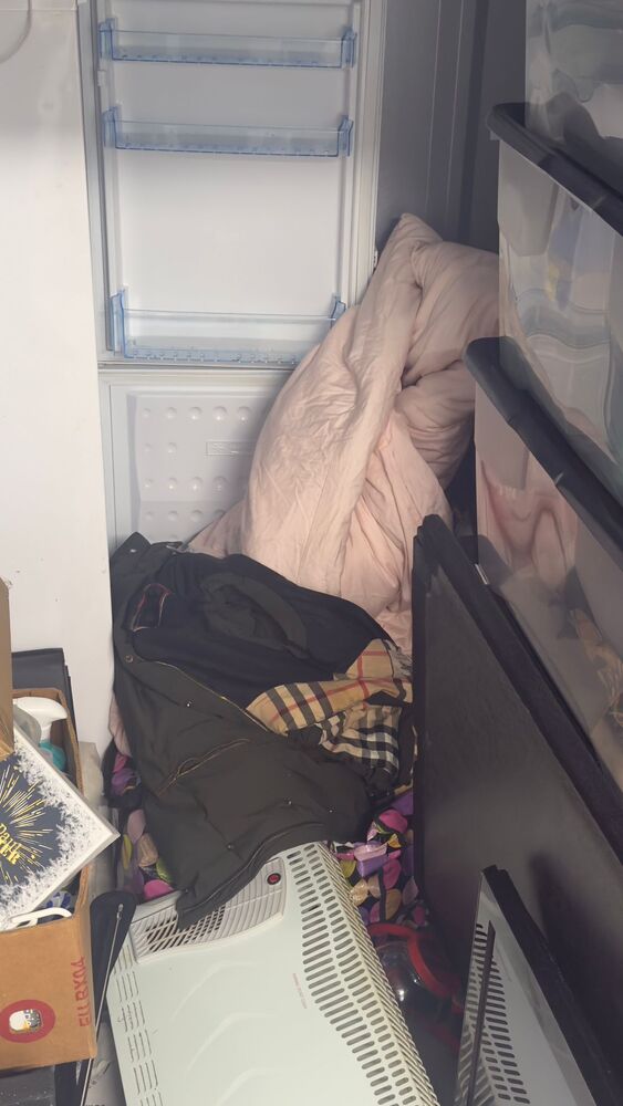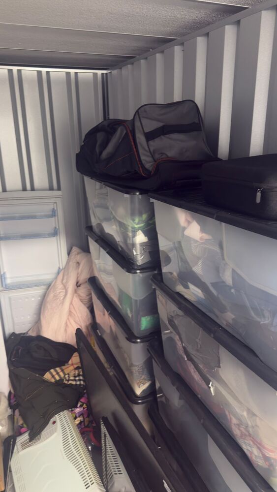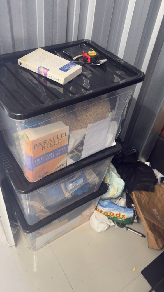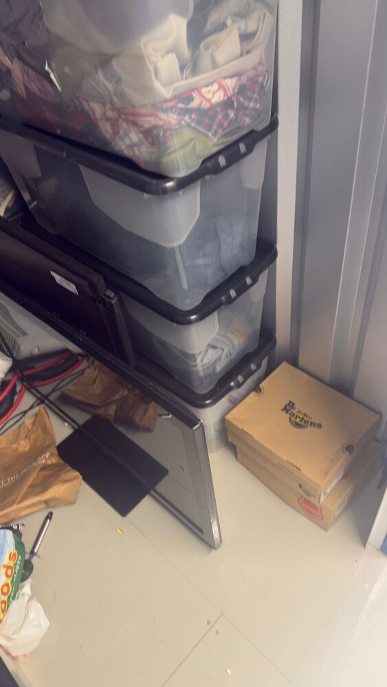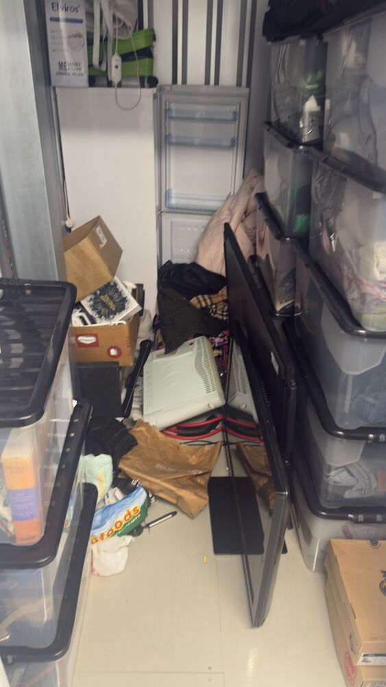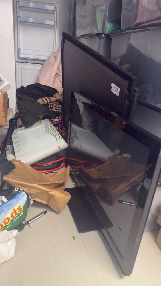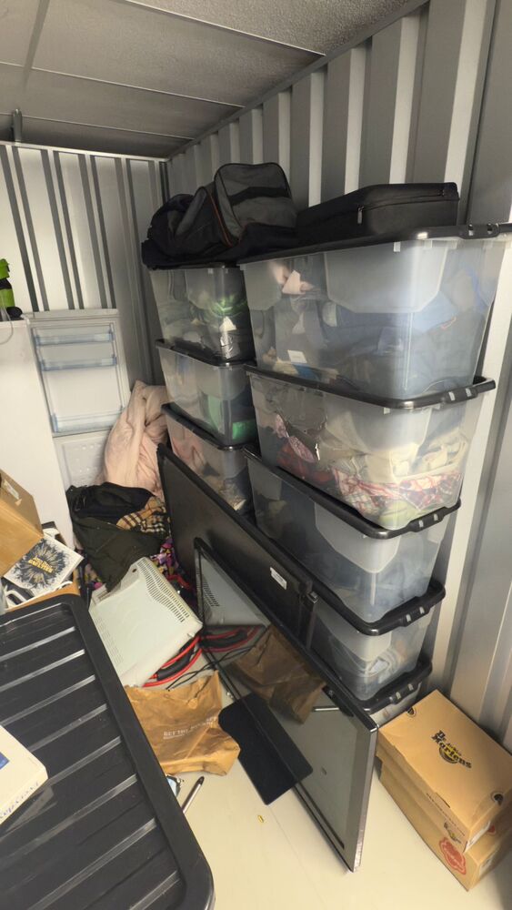 Plastic crates, couple of Tv's, fridge, clothes, small bags and other miscellaneous, exactly as the customer left them, untouched.