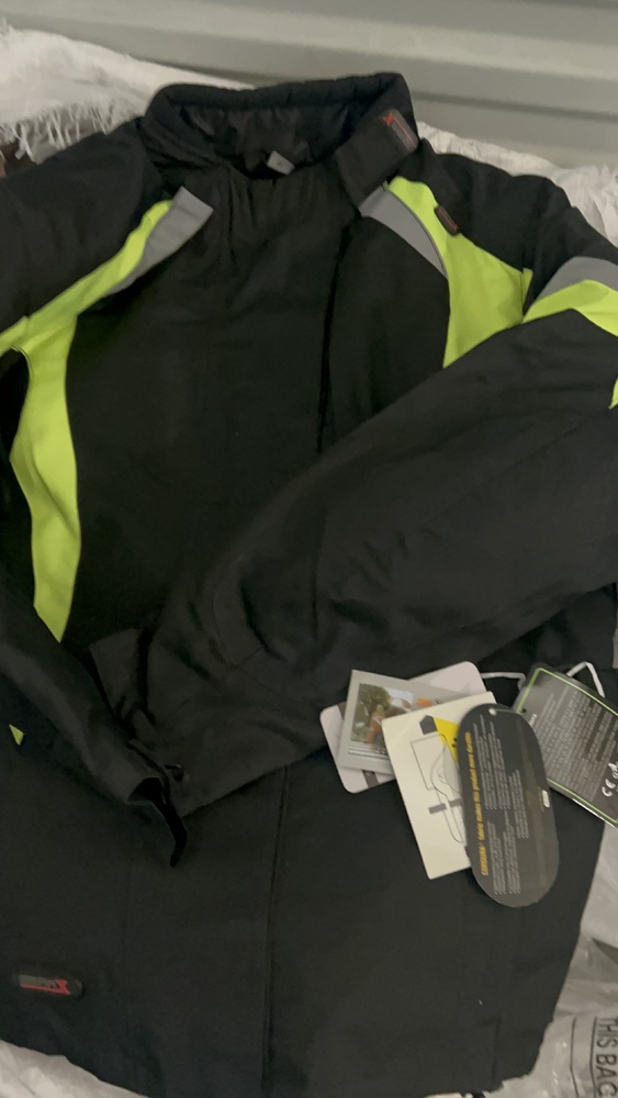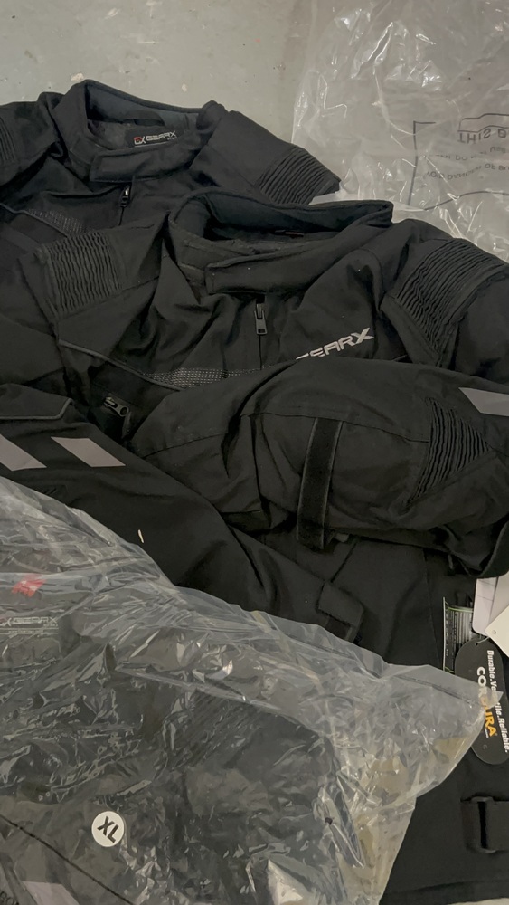 Brand new motor cycle jackets and some trousers also. All have tags still on. Various sizes around 50 jackets in total. A few pairs of trousers too