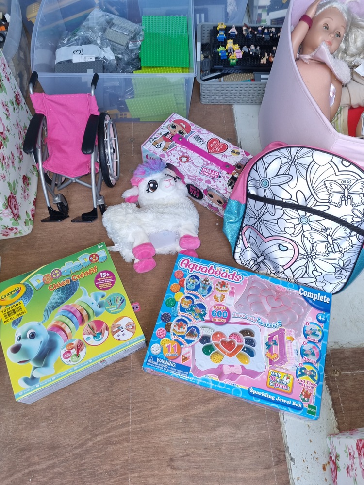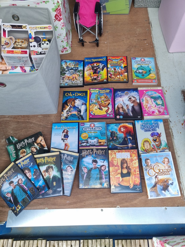 Assortment of Lego, Lego airport, Lego trains and track, Lego Harry potter, Lego Jurassic park, Childrens dolls, Childrens toys, Assortment of books, Assortment of DVDs.