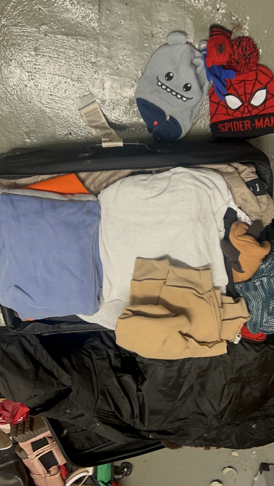 Mainly clothing suitcases kids toys bed ….