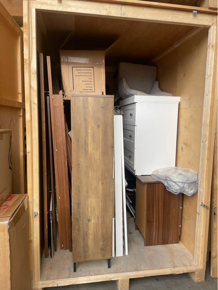 Removals company selling out contents of abandoned storage units. Boxes and furniture visible from the photo.