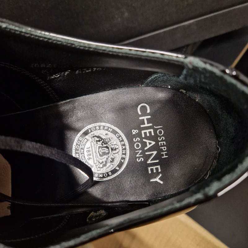 - Pair of Joseph Cheaney “Kelly” black patent shoes, size 11