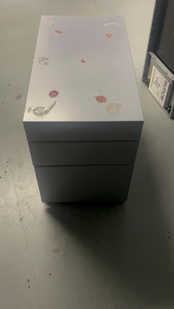 One sofa and two filing cabinets. .