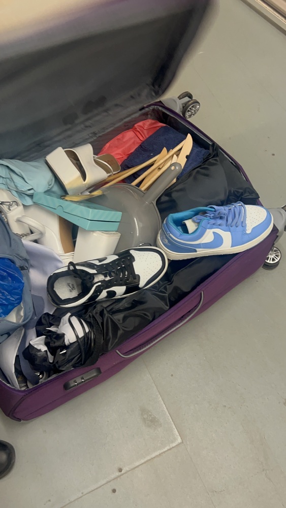 Suitcase and large hold all bag contains clothes, trainers camera tripods ..