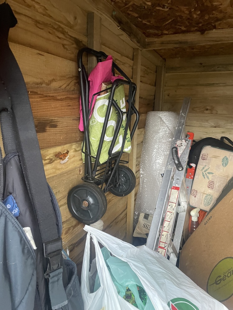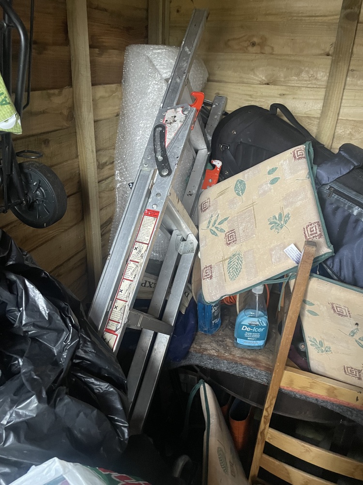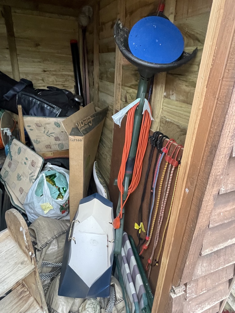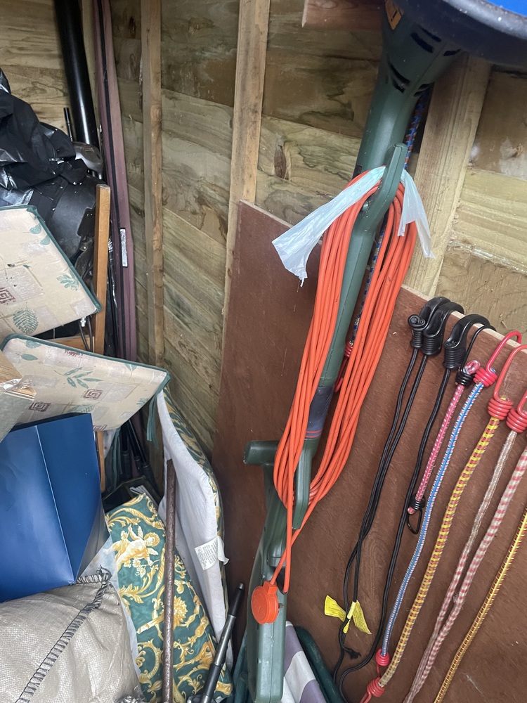 Mixed general-purpose unit containing a wide variety of household, DIY, and garden items. Visible contents include: