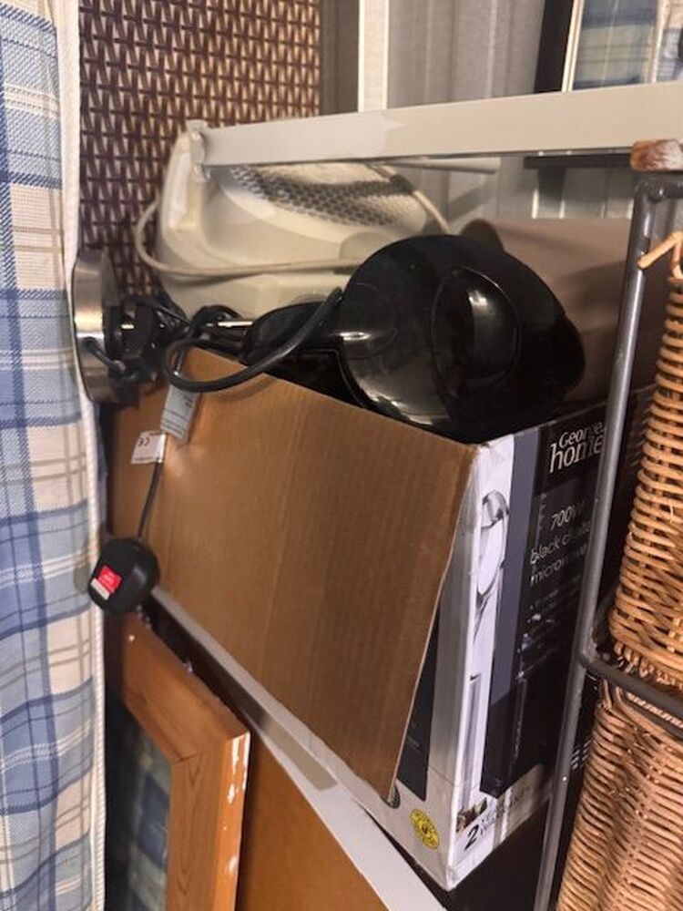 Box of small electrical items (kettle, heater etc)