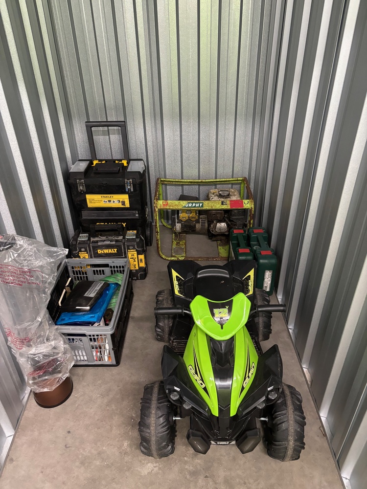 1 X Childs electric quad bike , 1x box of tow rope and ratchet straps, 1x case of 2 Dewalt electric drills , 1 x bosch saw , 1x bosch multi tool , 1x drinks cooler, 2 x box various tools , 1x J Murphy and son Generator.
