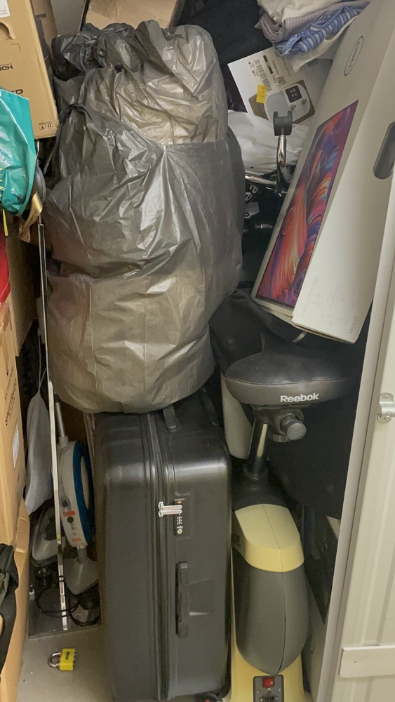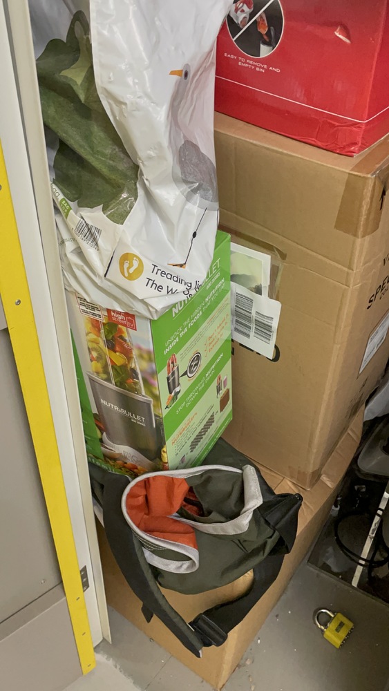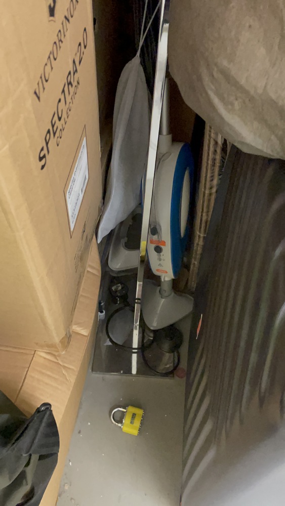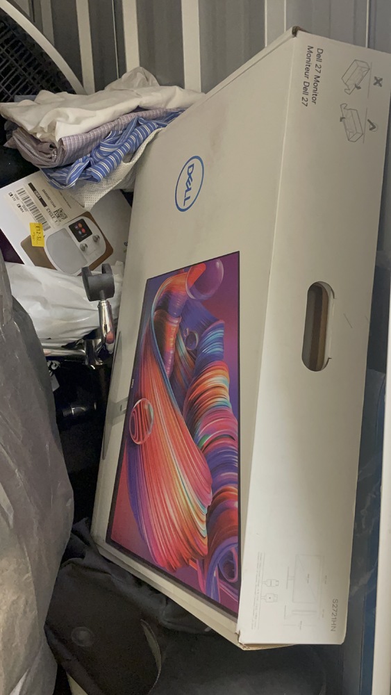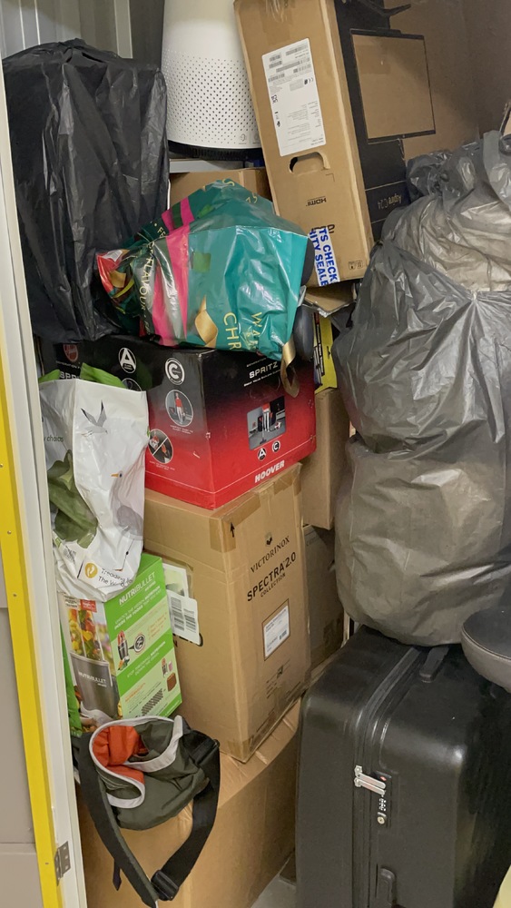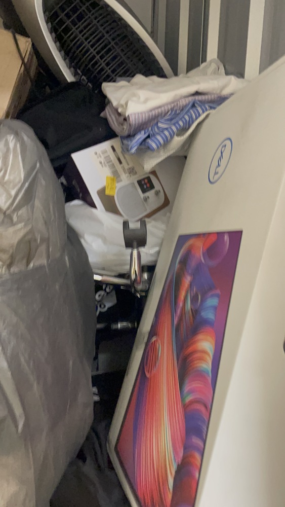 The 25 square-foot unit had to Dell PC monitor box as that might have monitors, one small, TV or monitor Box 2 dehumidifiers, a steamer, electric exercise, bike, wheelie chair, a vacuum cleaner, bullet, juicer, foxes bag, suitcase as a personal effects