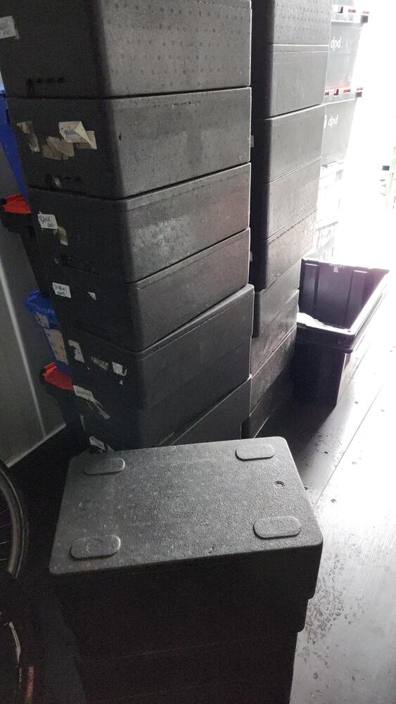 47X POLYSTYRENE BOXES (BLACK) 400MM X 270MM X 300MM - FAIR CONDITION