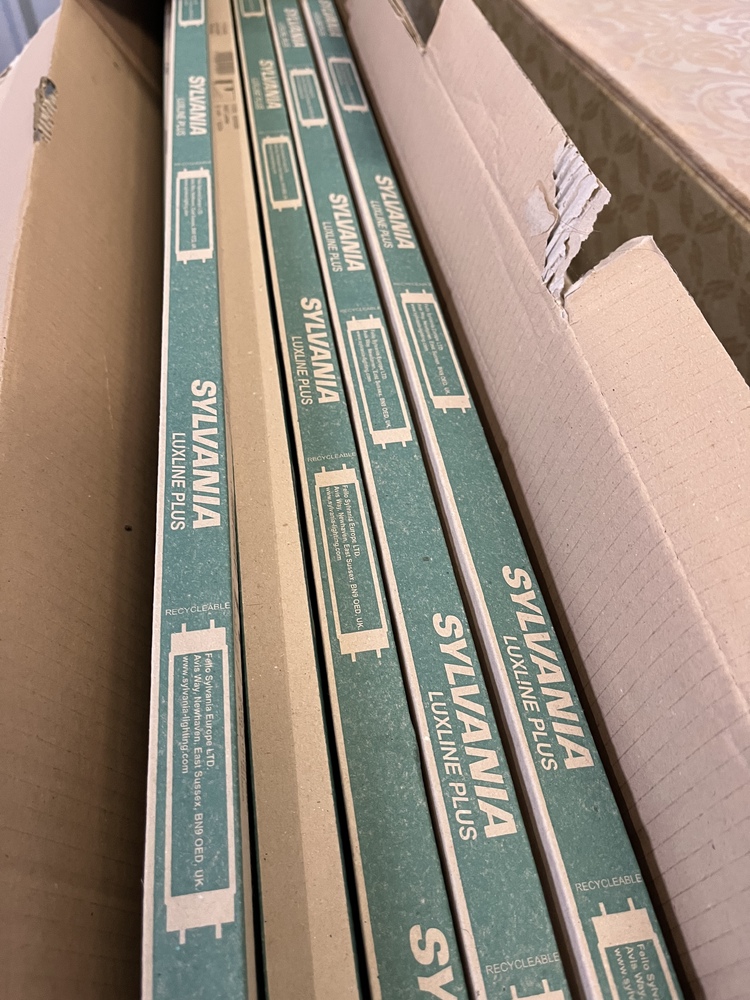 Approximately 120 plus sylvania - Philips- polylux different size fluorescent light tubes
