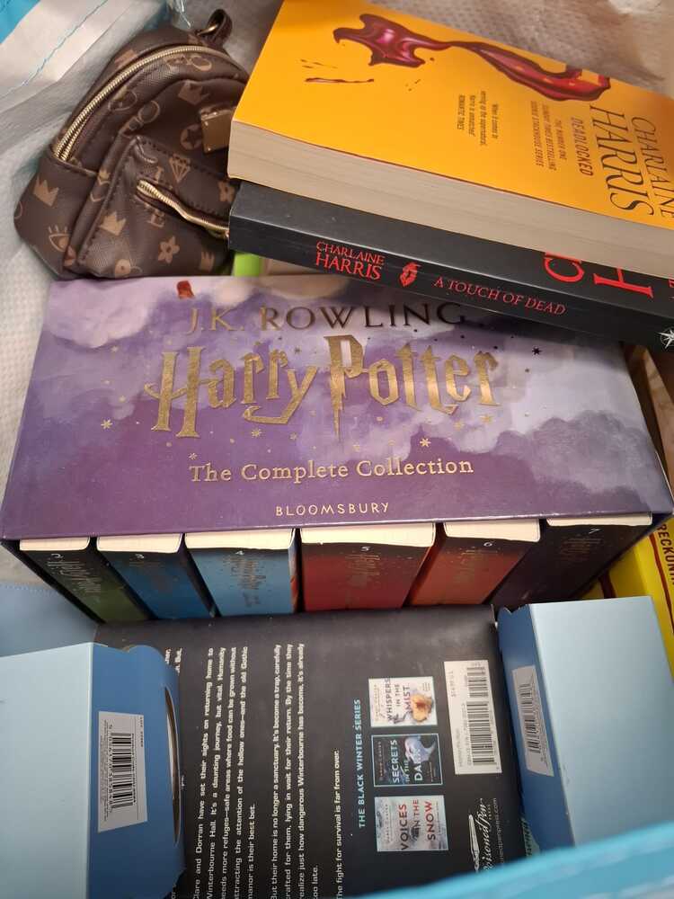 TV, CONVERSE TRAINERS NEW, BOOKS, BEDDING, VARIOUS TRAINERS, ASSORTED BAGS, CLOTHES, POKEMAN CARDS, HARRY POTTER BOOK COLLECTION