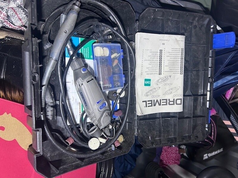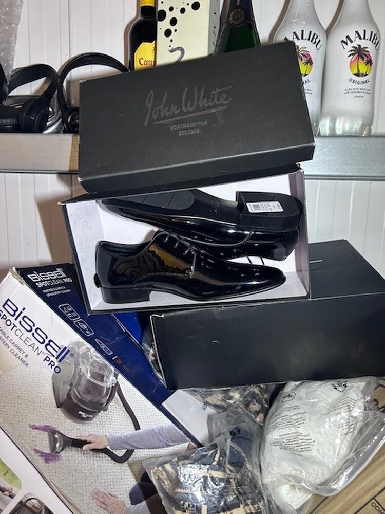Gazelle Electric Bike, Aeron Invalid Scooter, Supercross kids bike, Cased Dremel drill c/w tools, Brother labelling machine and label cassettes, Puma trainers, Bissell carpet cleaner, Stanley Tool box , Camera tripod and camera holder. Brand new boxed Lusso radiator, 2 dust buster vacuum cleaners, Yolo Headphones, Tool Boxes, Electric drill, 3 x headphones, Fortnum and Mason Champagne, Malibu, Wine, Boxed football boots, John White formal shoes boxed, HP printer. Adidas sliders new, Royal Wedding £5 coin, Hovver board, Turbo roller skates, Tool box screws etc,