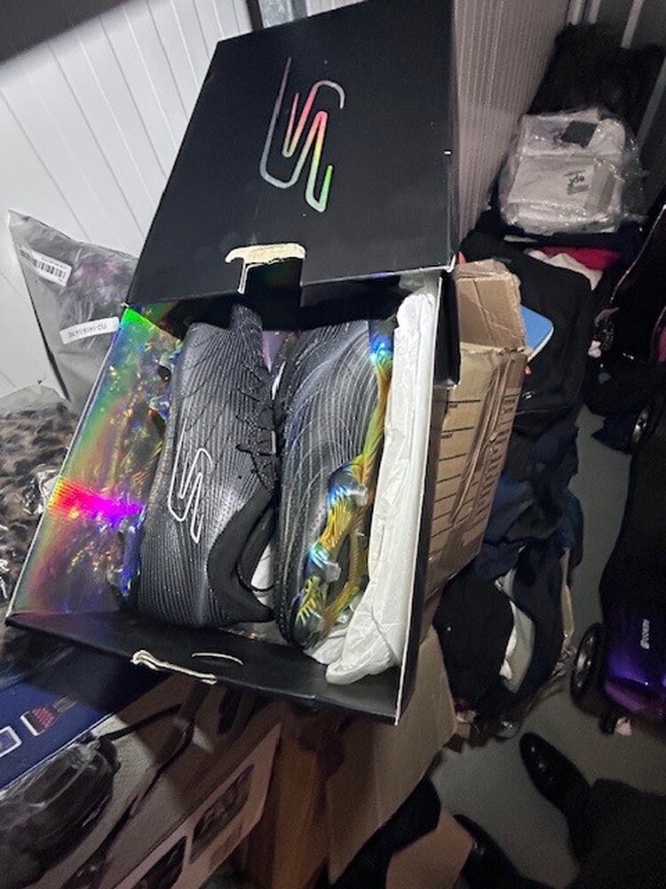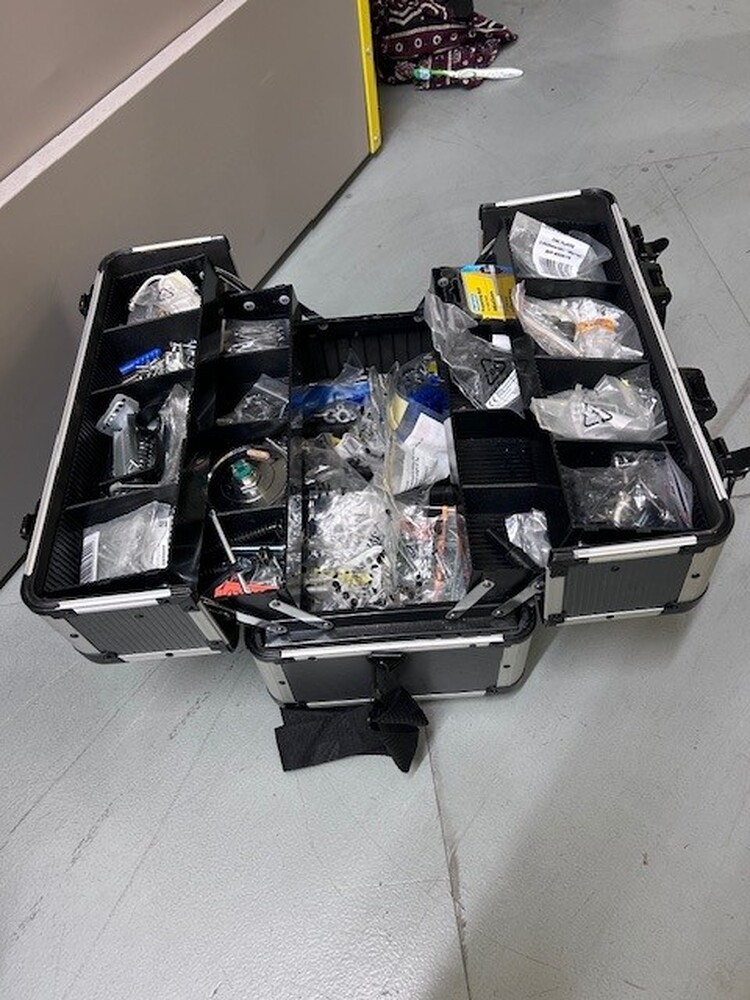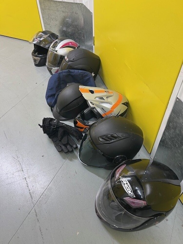 7 crash helmets, 3 hockey sticks, Dell laptop, Samsung tablet, Numerous sunglasses, Rayban sunglasses x 7, Orsley car dashcam, Smart watch, 4 x coats inc 1 Burberry mac, 2 x HP and 2 x Acer monitors, 6 brand new boxed picture frames, Desk monitor bracket, 5 x power banks, 1 set of mens golf clubs, 1 set of RTB ladies golf clubs, 2 sets of junior golf clubs