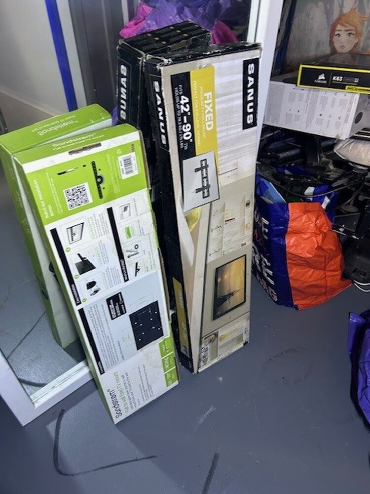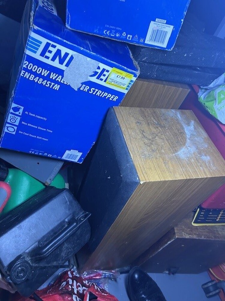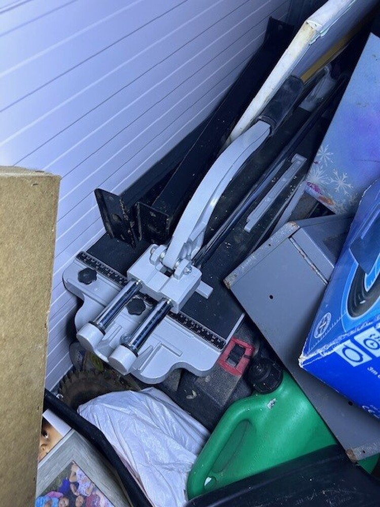SYM FNX BT scooter (some damage), Weights & Training equipment. Candy fridge/freezer. Full length mirror. Samsung tumble dryer. Bek electric cooker. x2 Xbox's and games. Gaming keyboard. SYM FNX BT scooter. Various power tools and carpenters tools. Cutting tools and disks. Misc. Tools. Workmate . Tile cutter. Power Craft compressor. Wallpaper table. Fly-Mo lawn mower. Amplifier. Speaker. Full length mirror. Office Ikea desk. Chair. TV wall brackets. Garden hammock with base still in box. Boxes and bags of personal and household items.