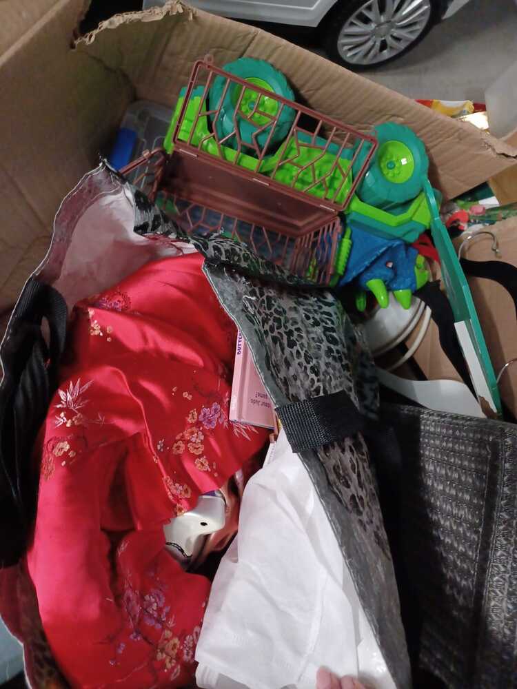 DOMESTIC FRIDGE, DOG CAGE, CHILDRENS RANGE ROVER CAR, RADIATOR, GLASS JARS, TENNIS RACKET, BABY ELEGANCE CRIB, CLOTHES, PINK BALENCIAGE TRAINERS, CAR DVD PLAYER, KAROKE MACHINE, CYBARSHOT SONY VIDEO CAMERA, TOYS.