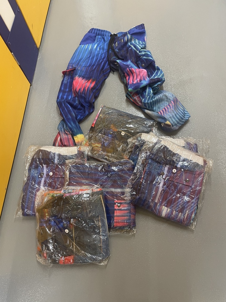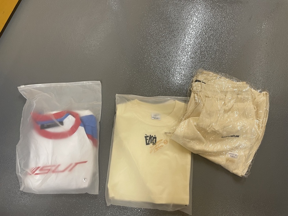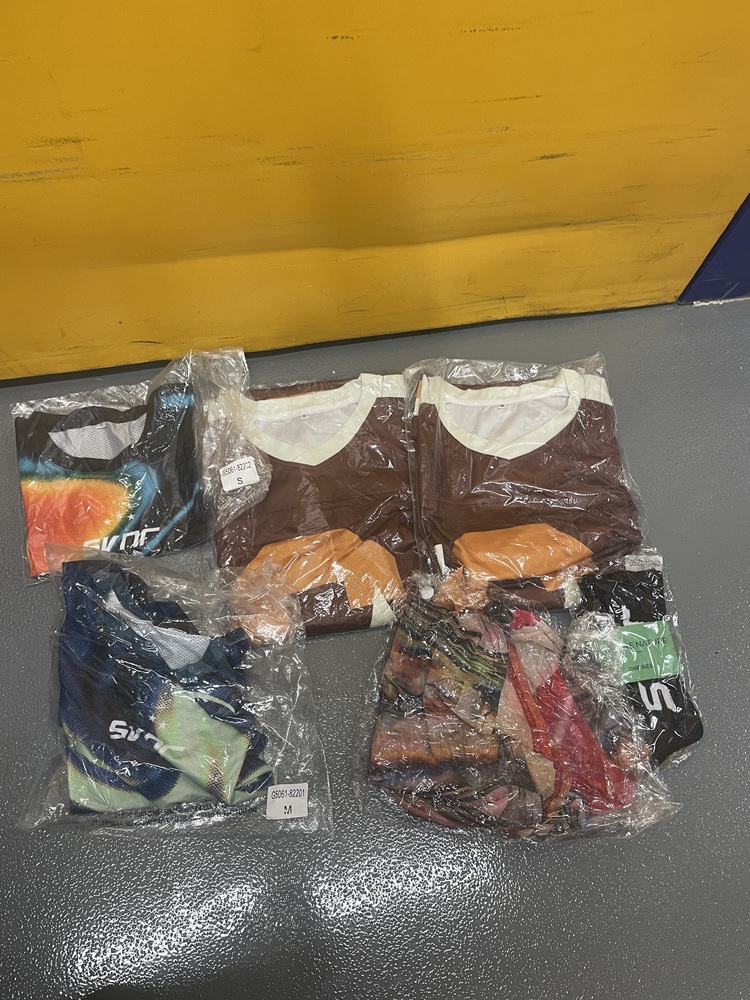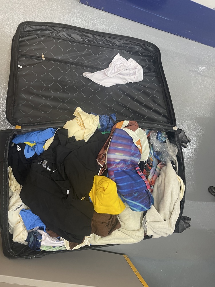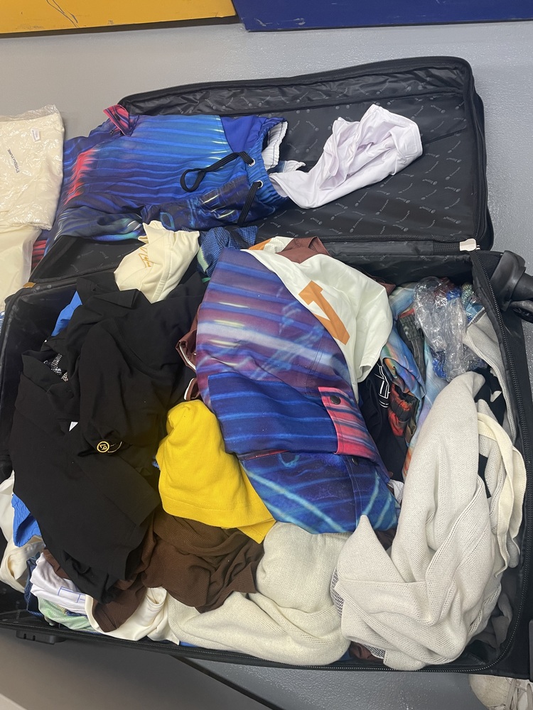 4 suitcases containing men’s logo clothing some new packaged and labelled