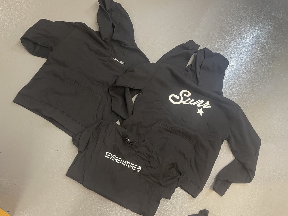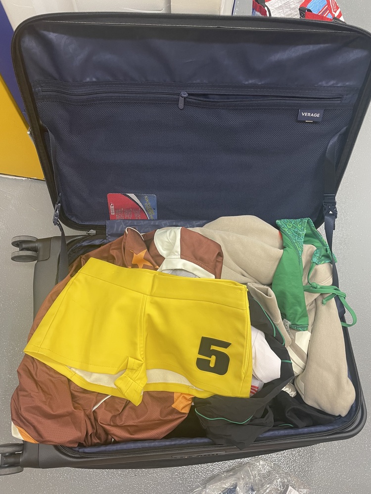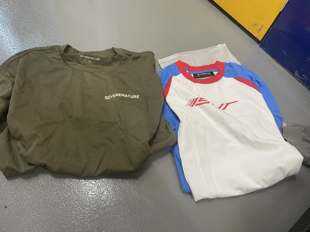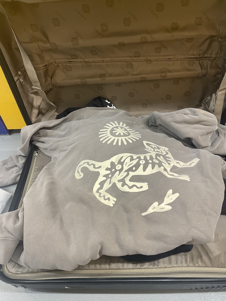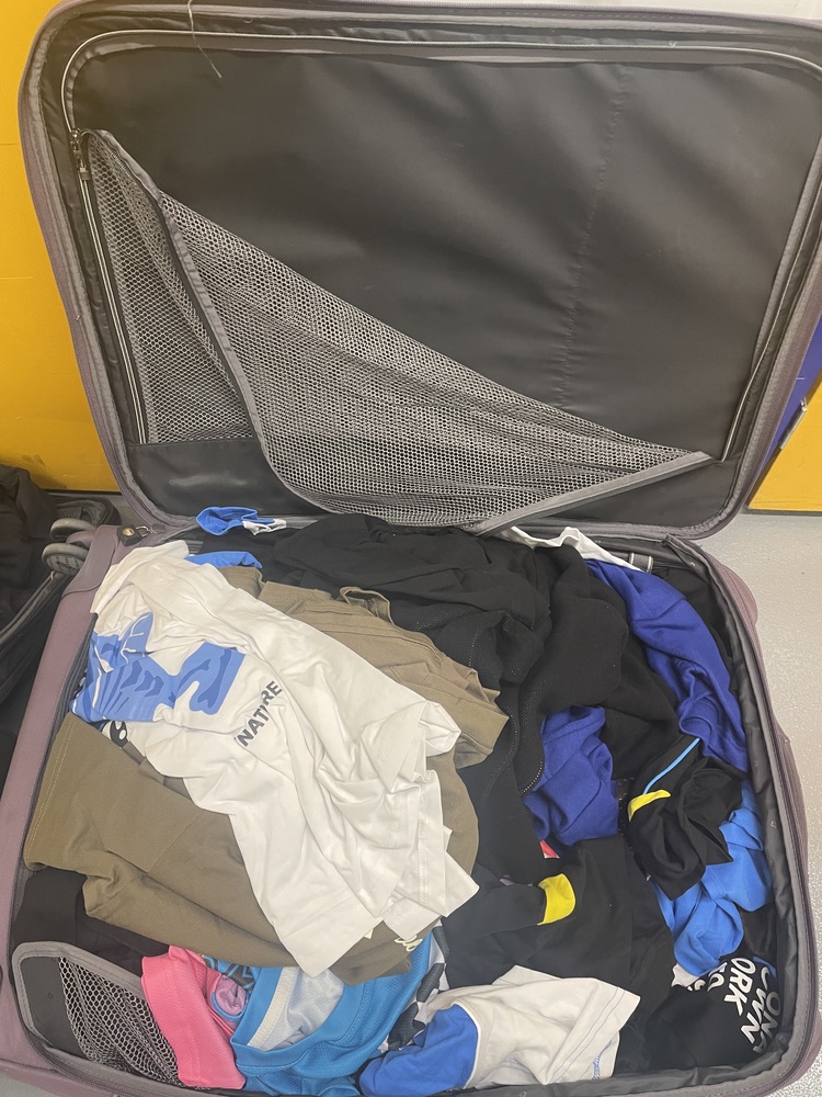 4 suitcases containing men’s logo clothing some new packaged and labelled