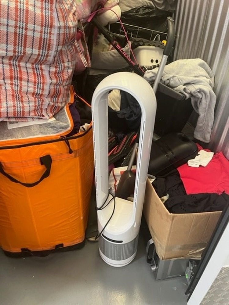 Dyson style fan, Microwave, Scooter, Unchecked bags and boxes, Toy Unicorn, Clothing items, toys.