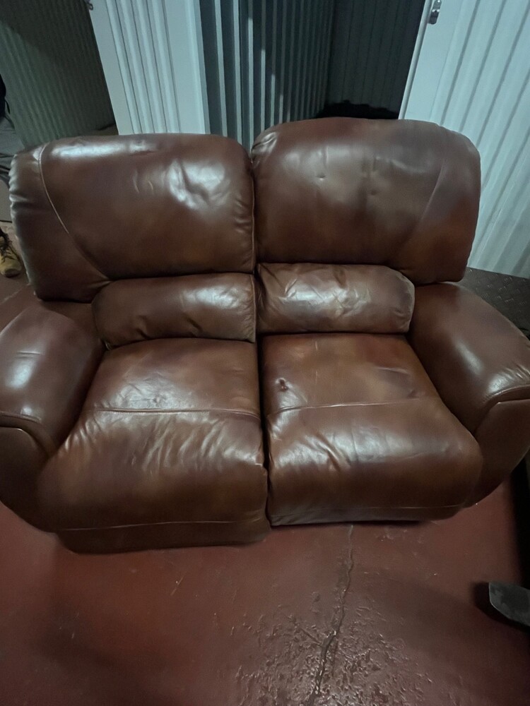 Brown leather reclining 2 seater sofa