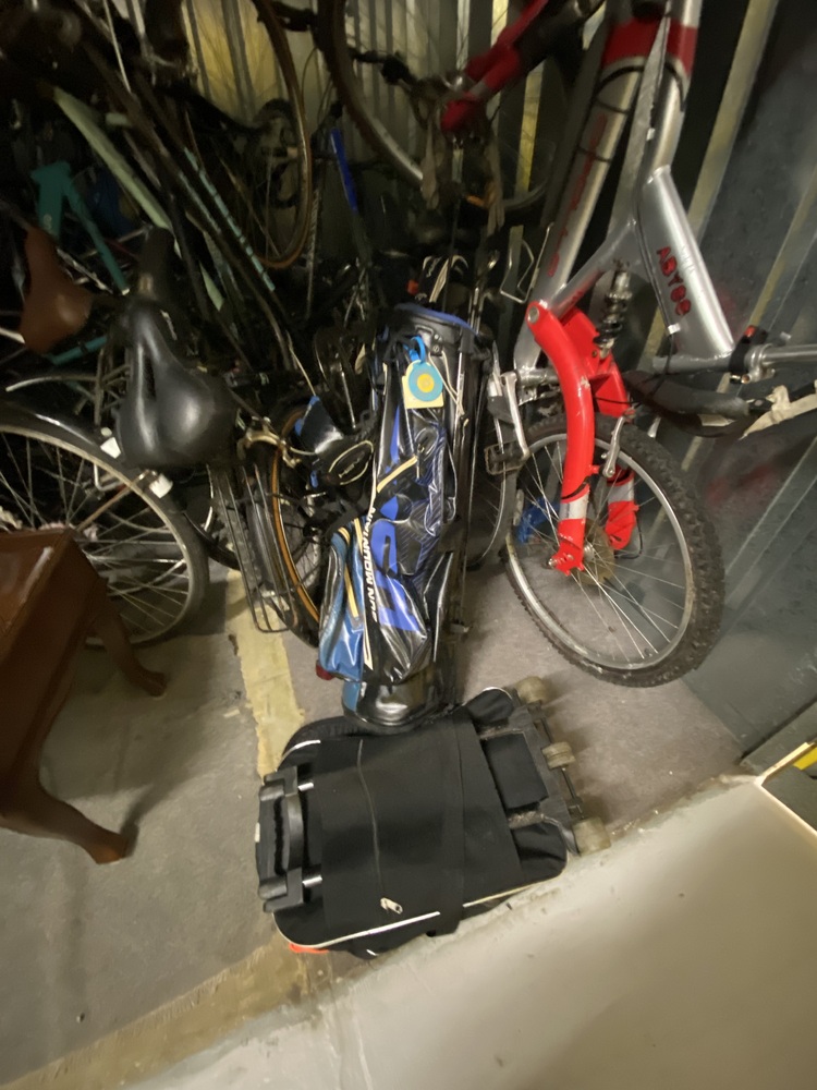 Around 10-15 Bicycles, chairs, suitcase, a set of cutlery items and set bag of golf items ==========================================