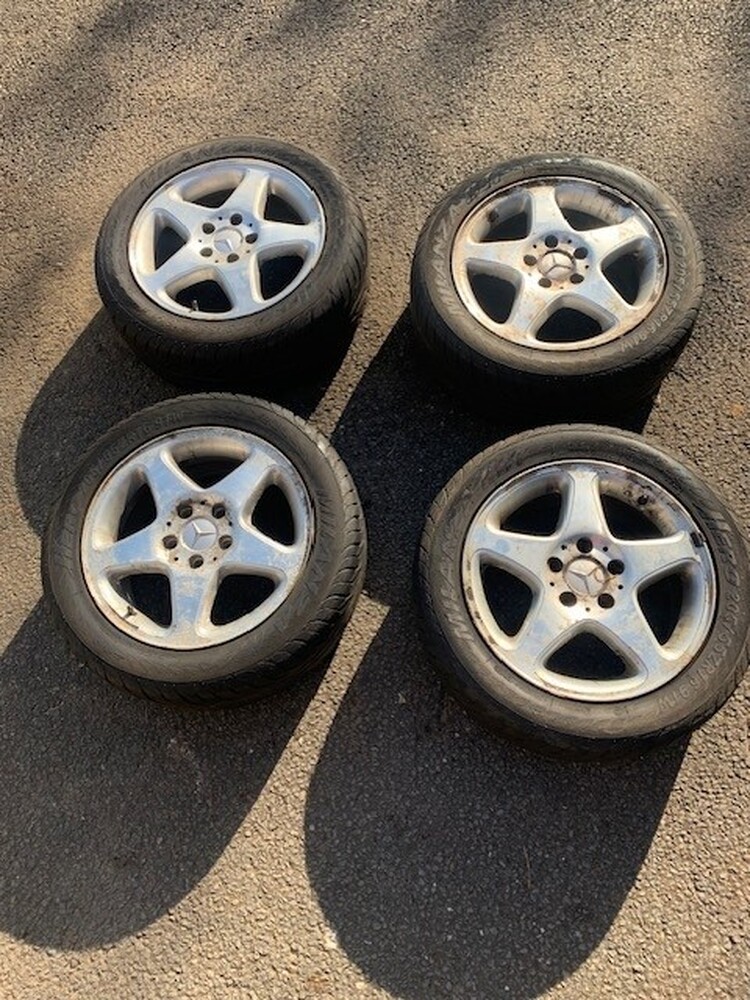 6.2. 4 number Mercedes 15 spoke alloy wheels with worn 205/60R16 tyres