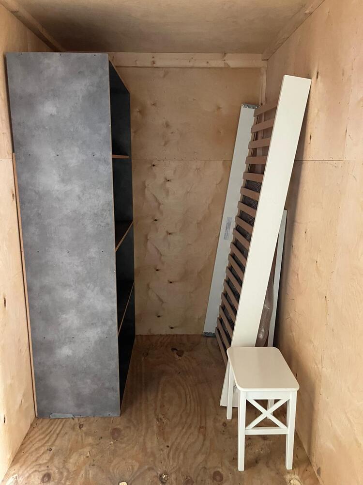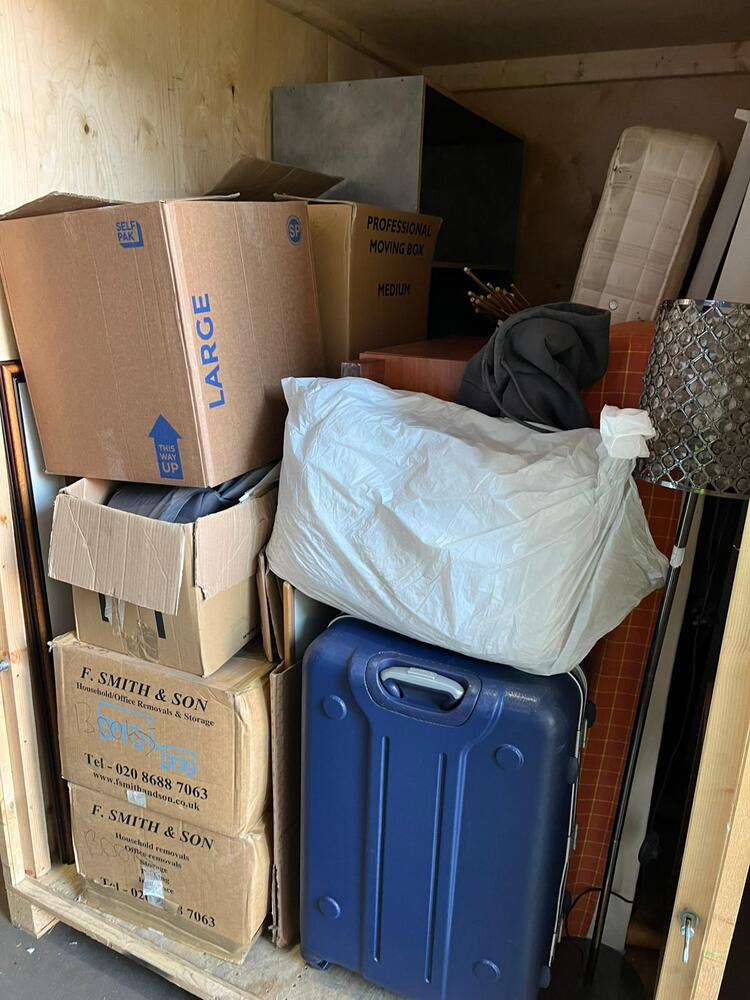 Contents of unit include - Bed / cabinet / lamp / mirror / boxes of personal effects