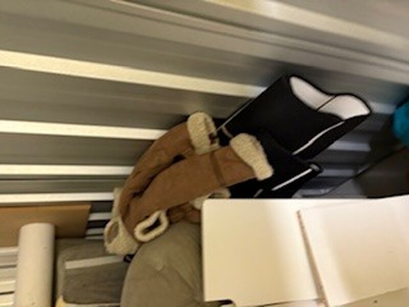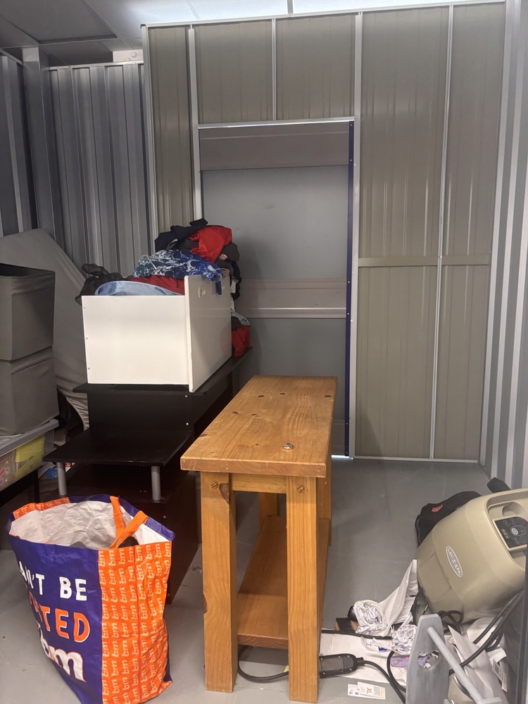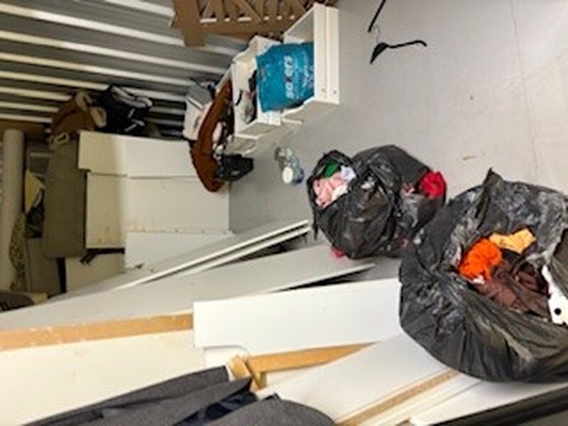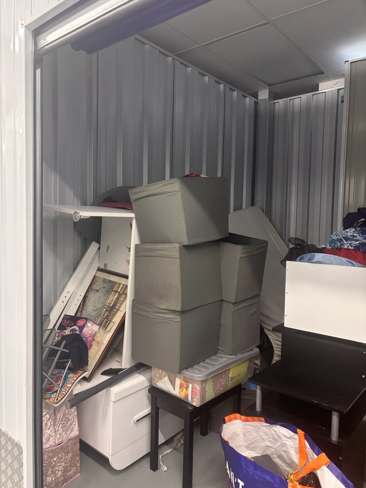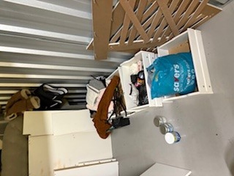 Two decent sized units full of several household goods and bits of furniture including some items of clothing.