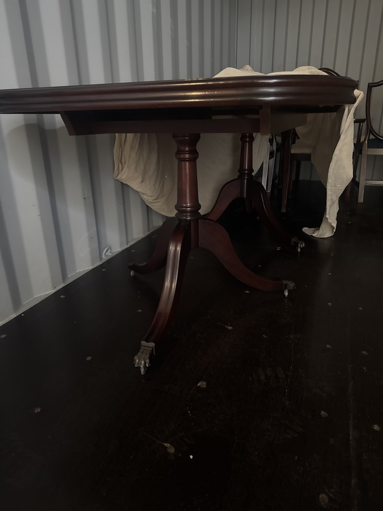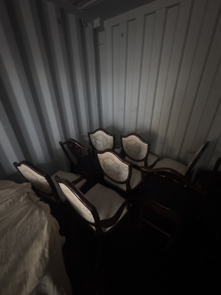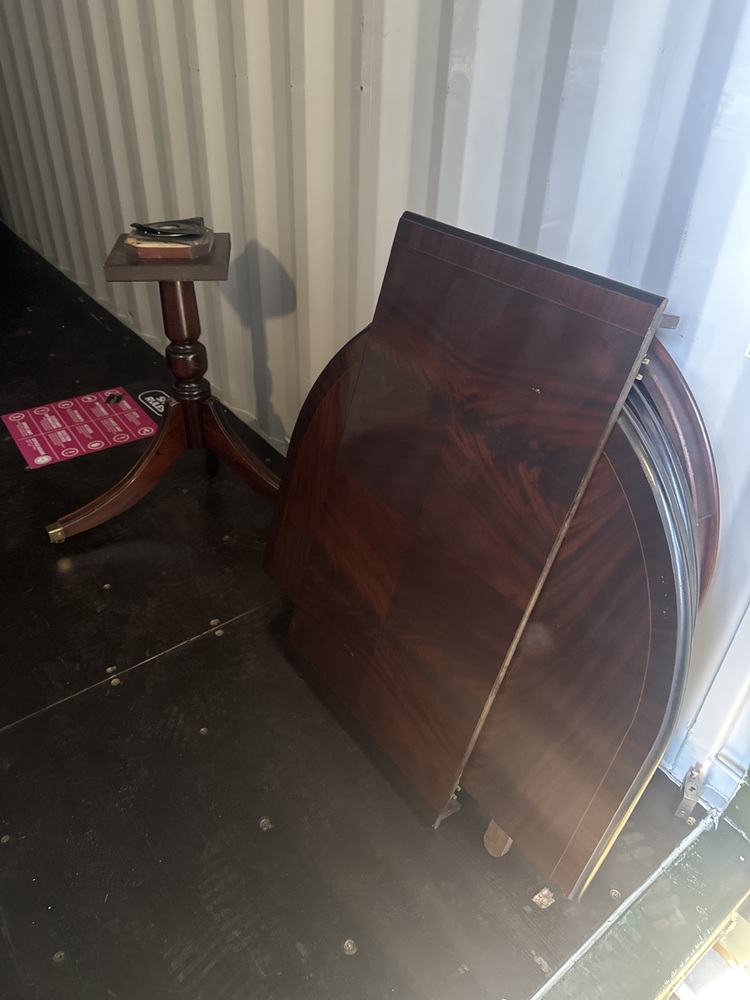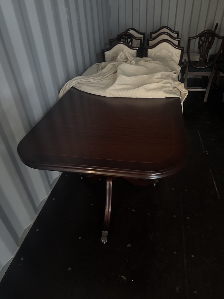 Selling the contents of a storage container, featuring two attractive table and chair sets ideal for home, office, or dining spaces. The first is a large wooden table complete with matching chairs, offering a sturdy and stylish centrepiece suitable for family meals, gatherings, or workspace use. The second is a smaller table and chairs set,